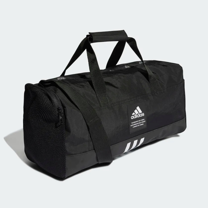Organised storage is the key to travelling light. This adidas extra-small duffel bag has just the right amount of space for a quick trip to the gym. A mesh zip pocket keeps wet clothes or shoes separate. Made in part with recycled content generated from production waste, e.g. cutting scraps, and post-consumer household waste to avoid the larger environmental impact of producing virgin content.