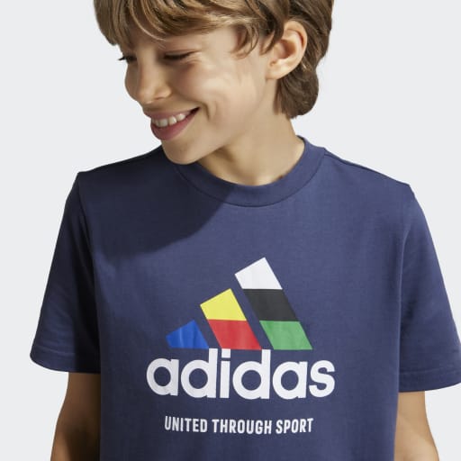 Whether you're cheering from the stands or watching the match at home, this juniors' adidas t-shirt lets you show off your love of sport. The bold graphic spanning the chest celebrates the beautiful game and your favourite squad, while ultra-soft cotton keeps the vibe casual. No matter how you style it, this tee is sure to earn nods of approval from fellow supporters.