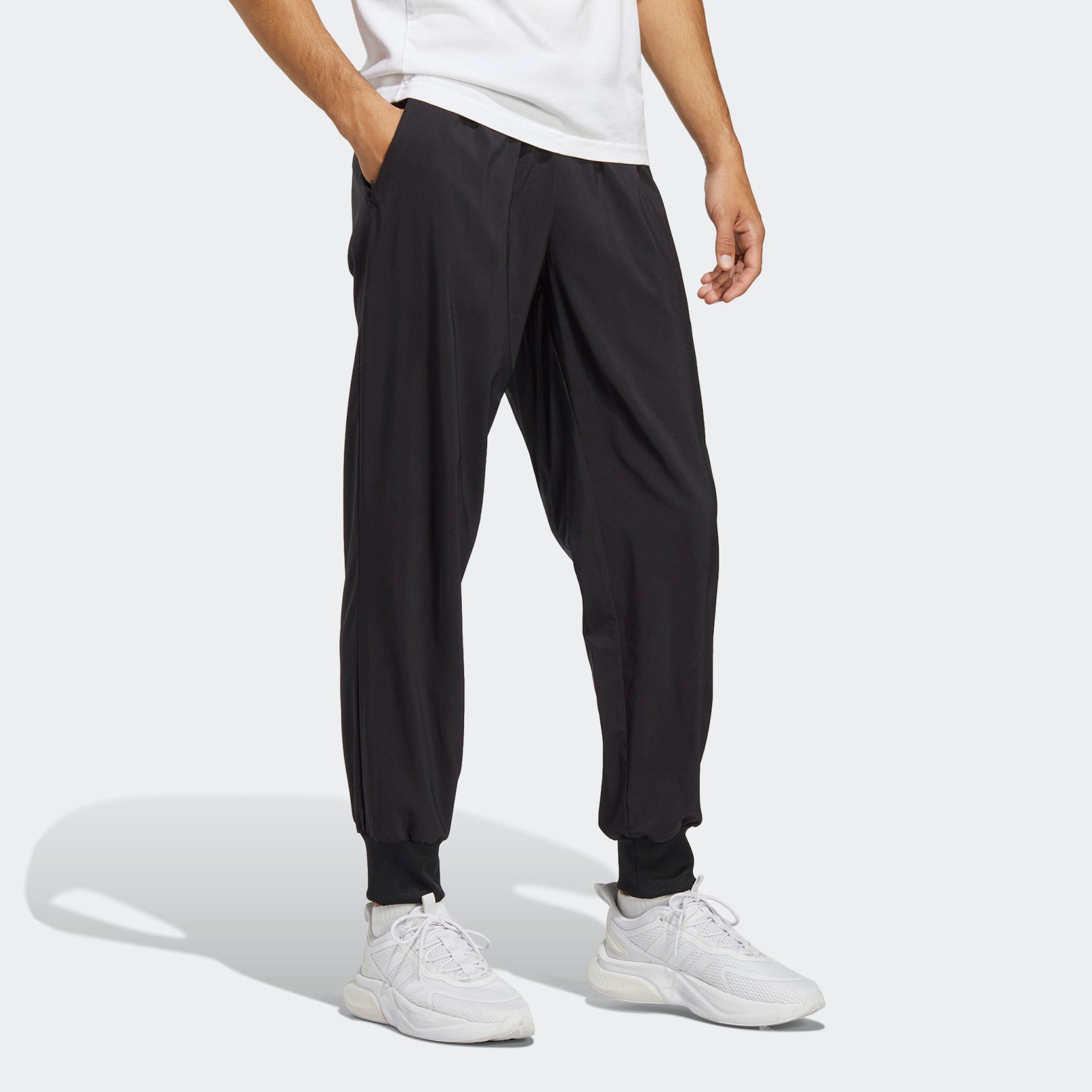 Warm up. Cool down. Do nothing at all. These adidas pants support whatever the pace and whatever the vibe. If you're feeling amped up, moisture-absorbing AEOREADY will keep you dry and confident. Smooth polyester plain weave adds comfort through everything your day throws at you. A minimum of 70% of this product is a blend of recycled and renewable materials.