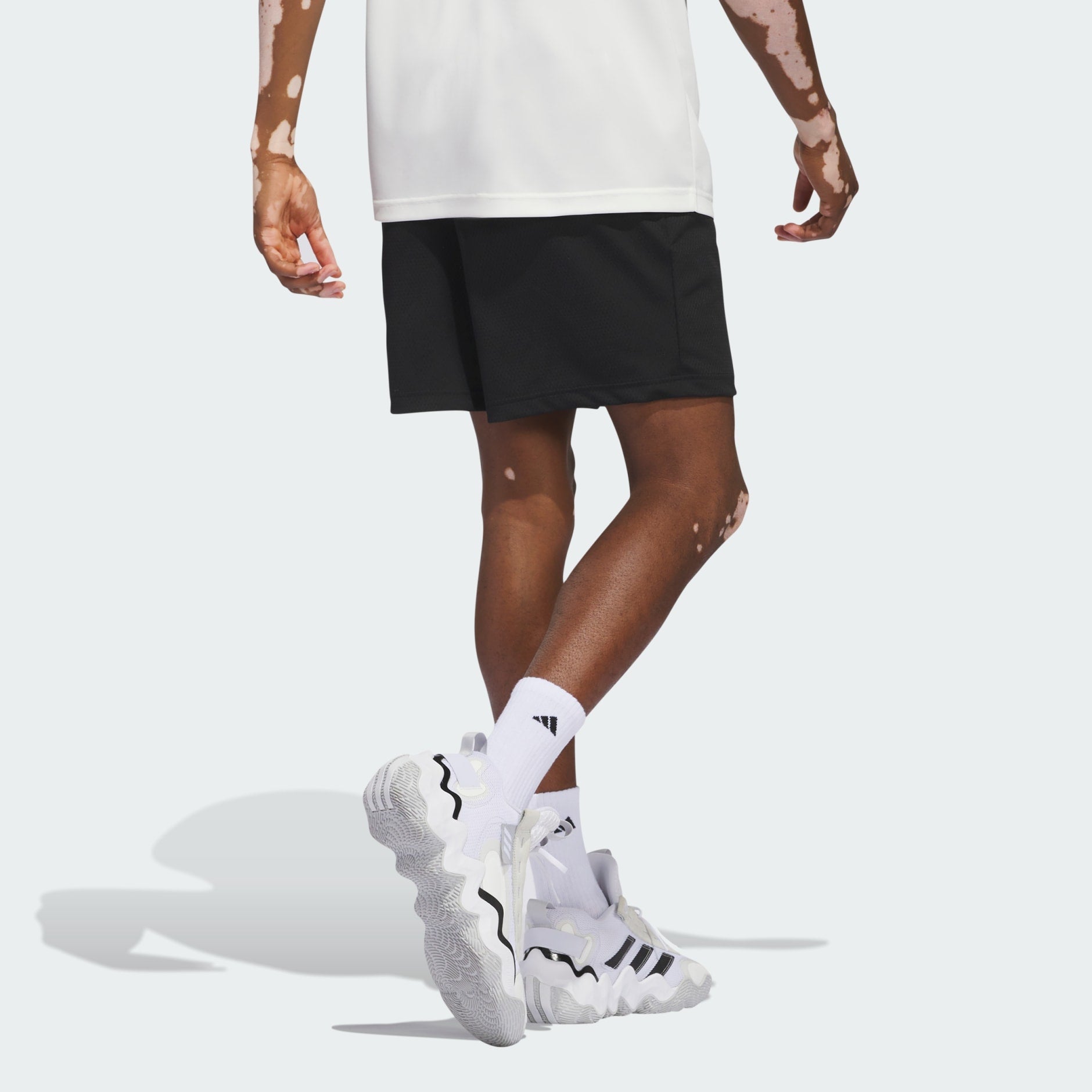 Take your game up a notch in these adidas basketball shorts. They're made from airy mesh fabric for a soft and breathable feel. AEROREADY helps keep you dry with every hard drive to the basket and step-back dribble. The adidas Basketball jocktag adds a signature finish. A minimum of 70% of this product is a blend of recycled and renewable materials.