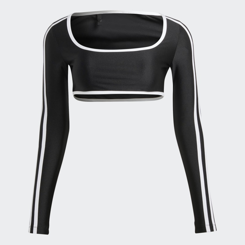 You have three looks in one with this super high-shine adidas top. Separately, here's what you get — a turtleneck bodysuit that loves your shape with a stretchy fit, and then a bolero top that stands out with the iconic 3-Stripes. Together, you get a statement style that takes some influence from the world of '80s aerobics. However you wear it, there's no shortage of fun to be had, or comfort to be felt.