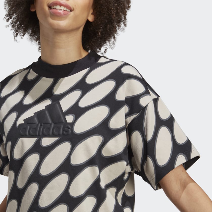 A '60s-style print, reimagined for the woman of today. This adidas t-shirt was created in collaboration with design house Marimekko, known for its outsized motifs. Made from stretchy cotton and cut for a crop fit, it's sporty and casual, bold yet effortless.