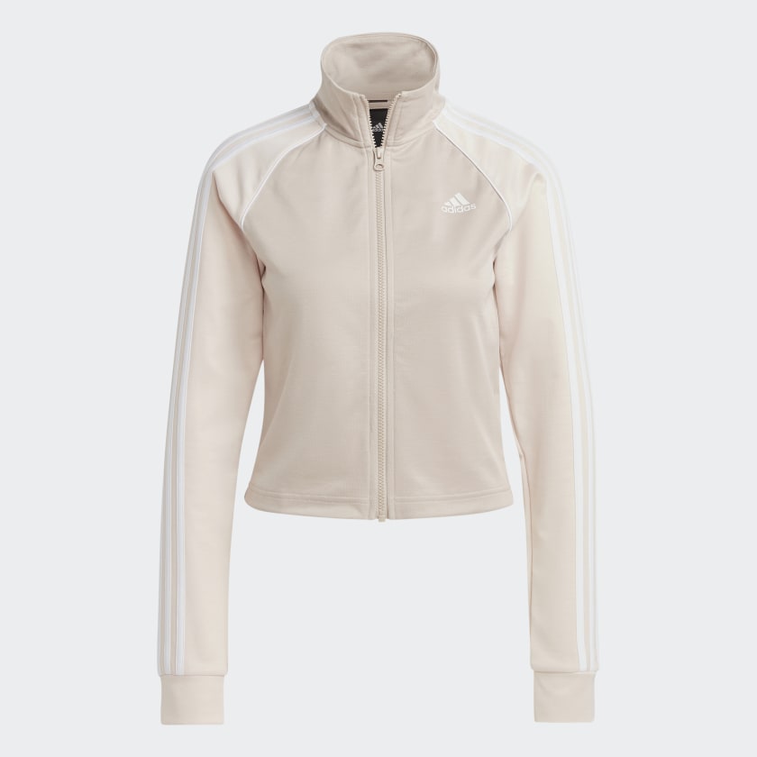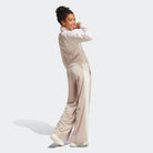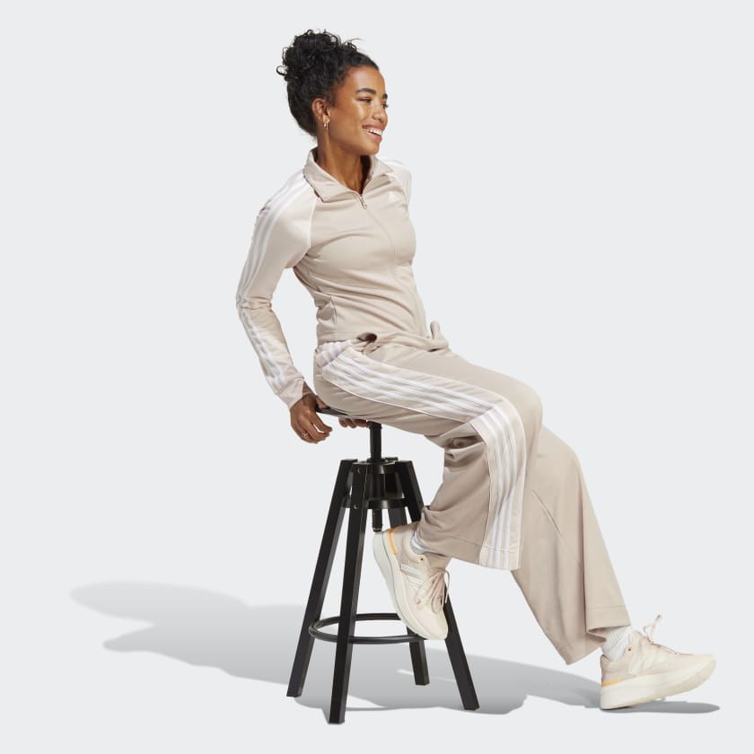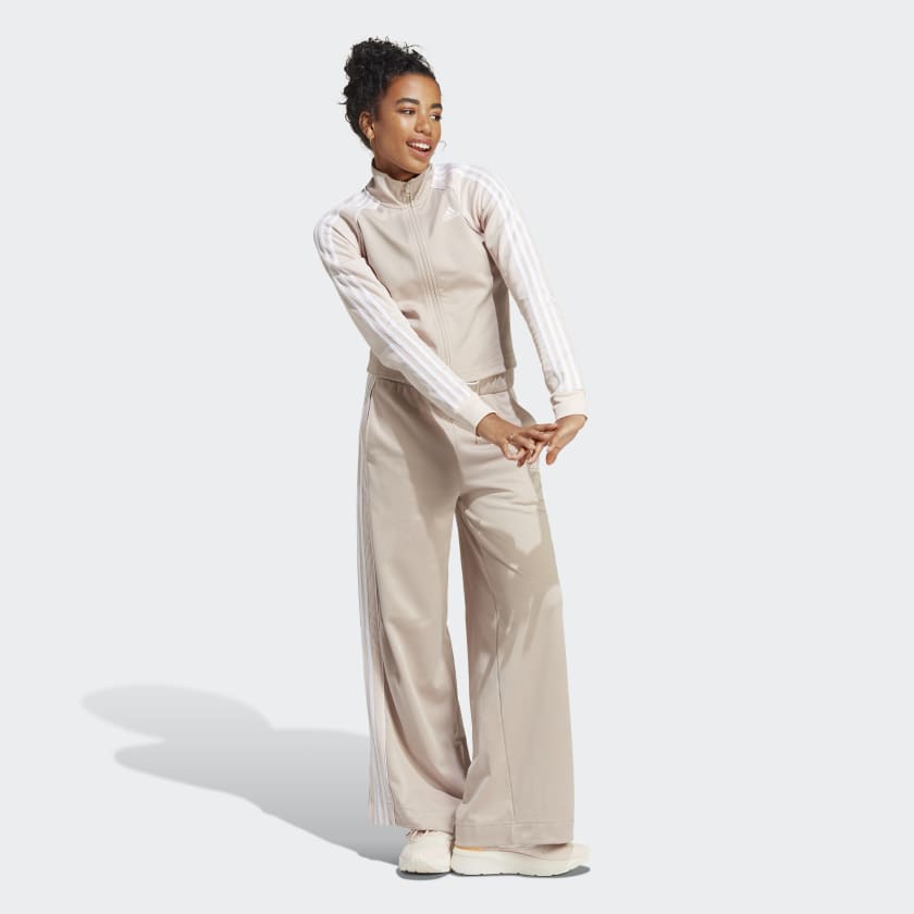 This modern take on the classic track suit will have you looking put-together while staying comfortable. The set makes is fashion-forward while staying minimal with a fitted top, wide-leg pants and two-toned colorblocking. Signature 3-Strips line both the sleeves and pant legs, showing off your adidas pride.