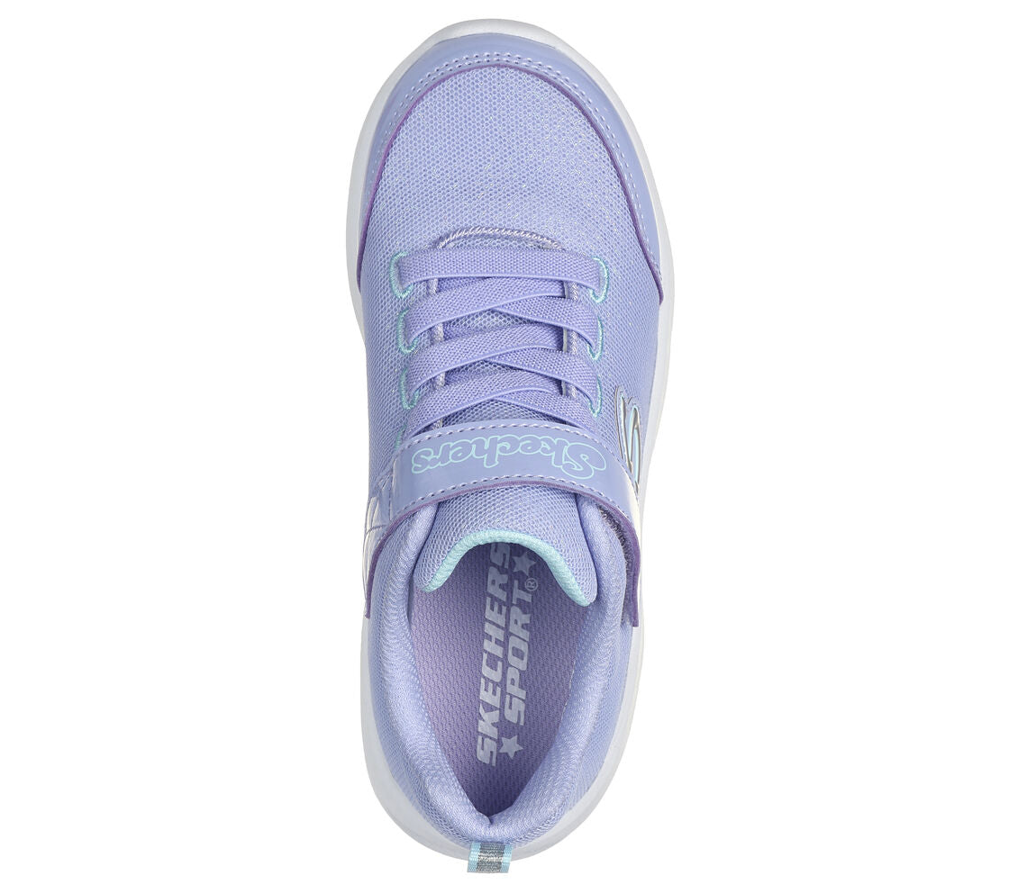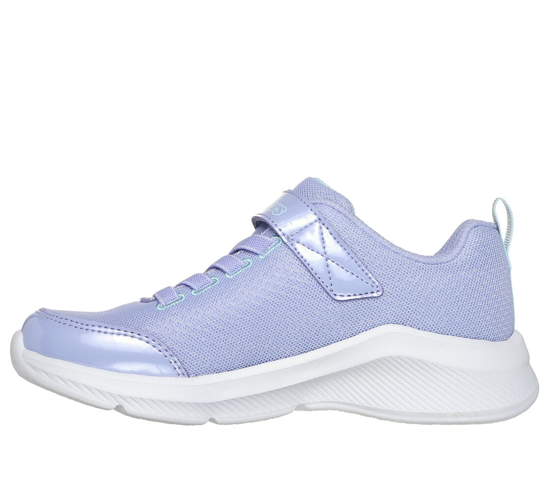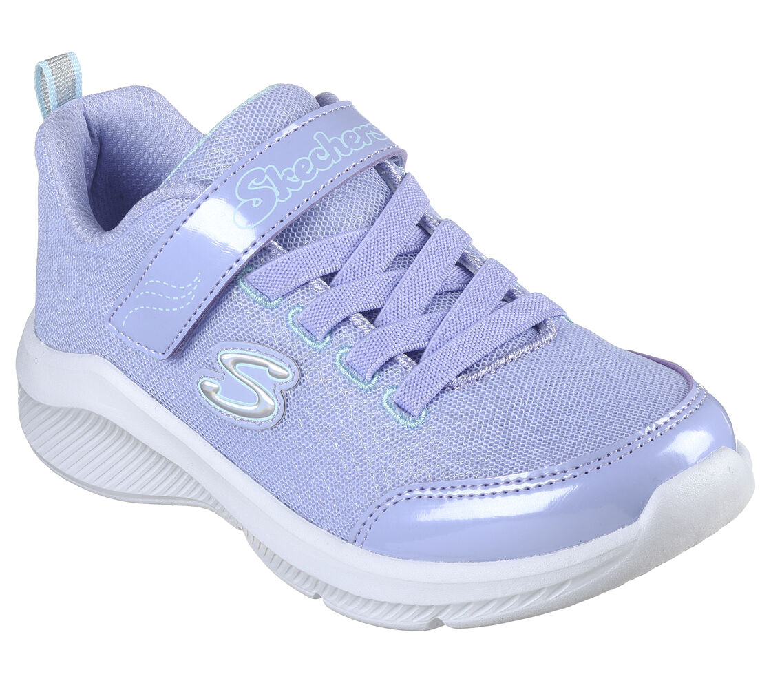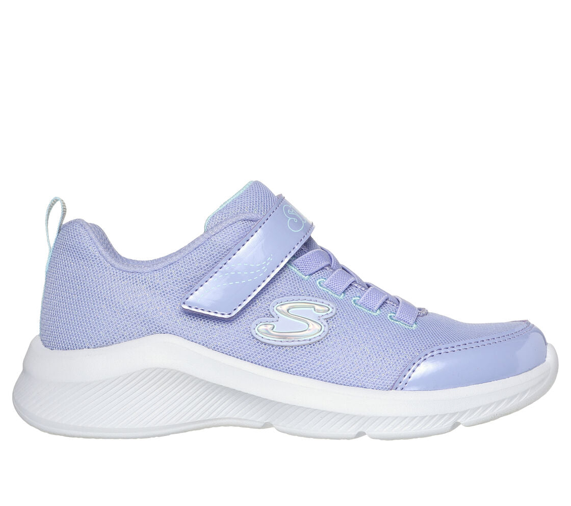 Take on the playground in shine-on comfort wearing Skechers Sole Swifters. This sporty comfort sneaker features a sparkle mesh and glossy synthetic upper with stretch laces, an adjustable instep strap, and a cushioned comfort insole.