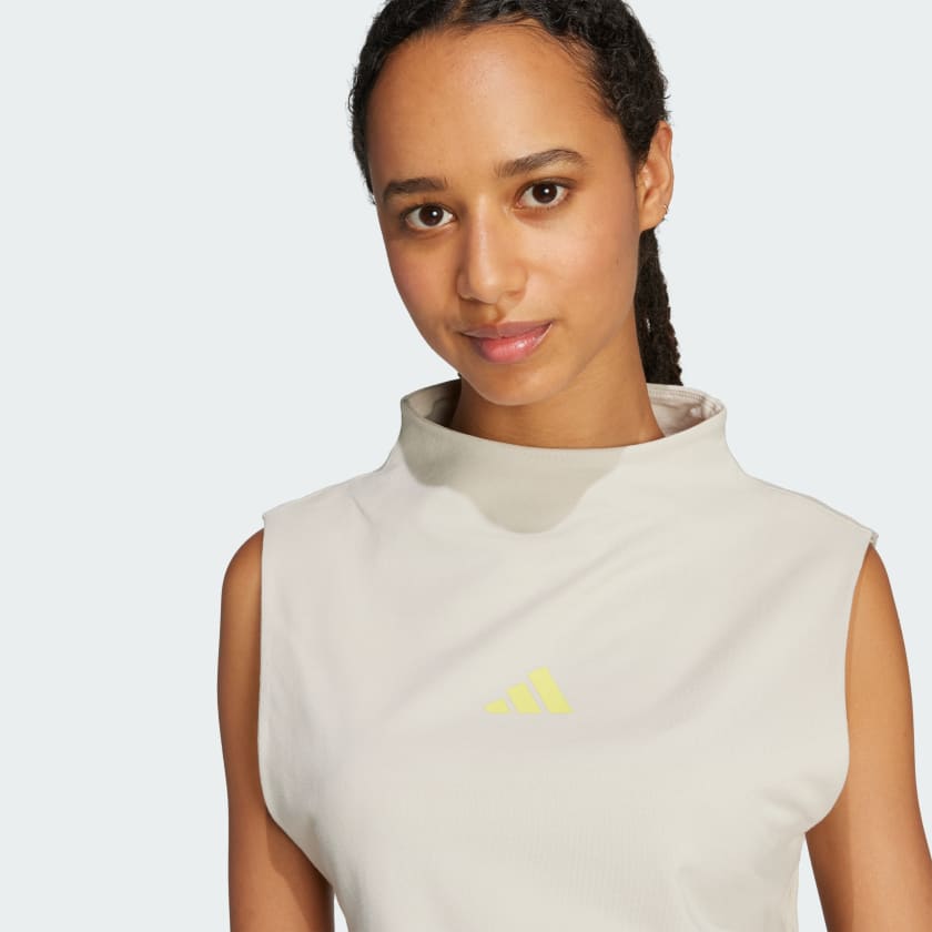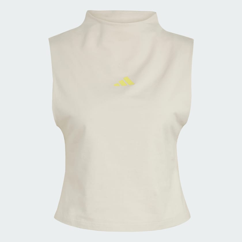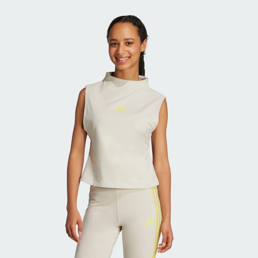 This adidas tank top is all about style and comfort for sunny days and warm nights. Its slim fit and high neckline give it a fashionable edge, while stretchy cotton jersey keeps you comfortable for hours. An adidas 3 Bar Logo gives it a sporty signoff.