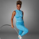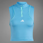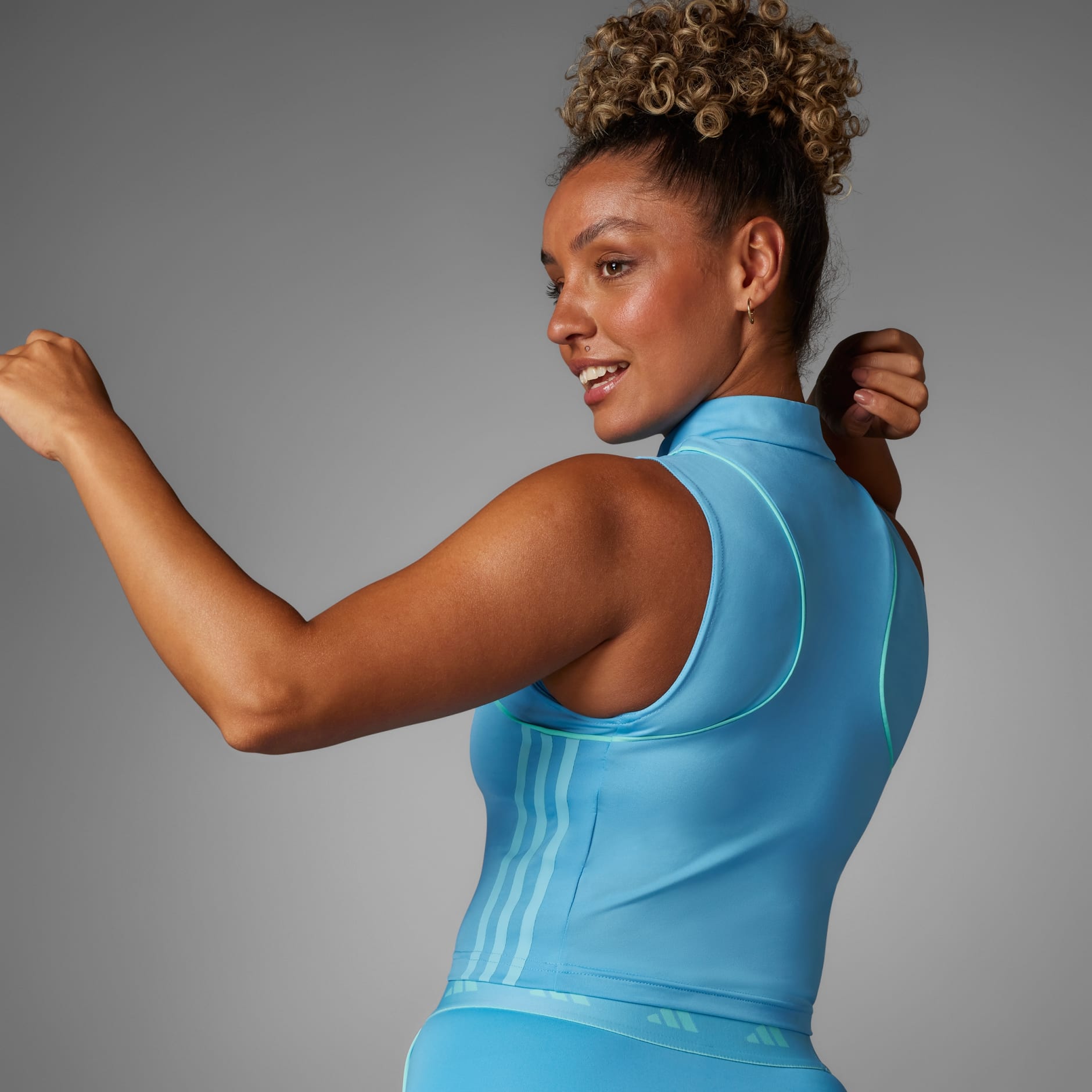 Dance through your day in this adidas training tank top. It has a cropped silhouette, with a half zip and stand-up collar for extra sporty vibes. AEROREADY keeps you dry and comfortable in any workout, while colour-pop piping brings the fun.This product is made with at least 70% recycled materials. By reusing materials that have already been created, we help to reduce waste and our reliance on finite resources and reduce the footprint of the products we make.