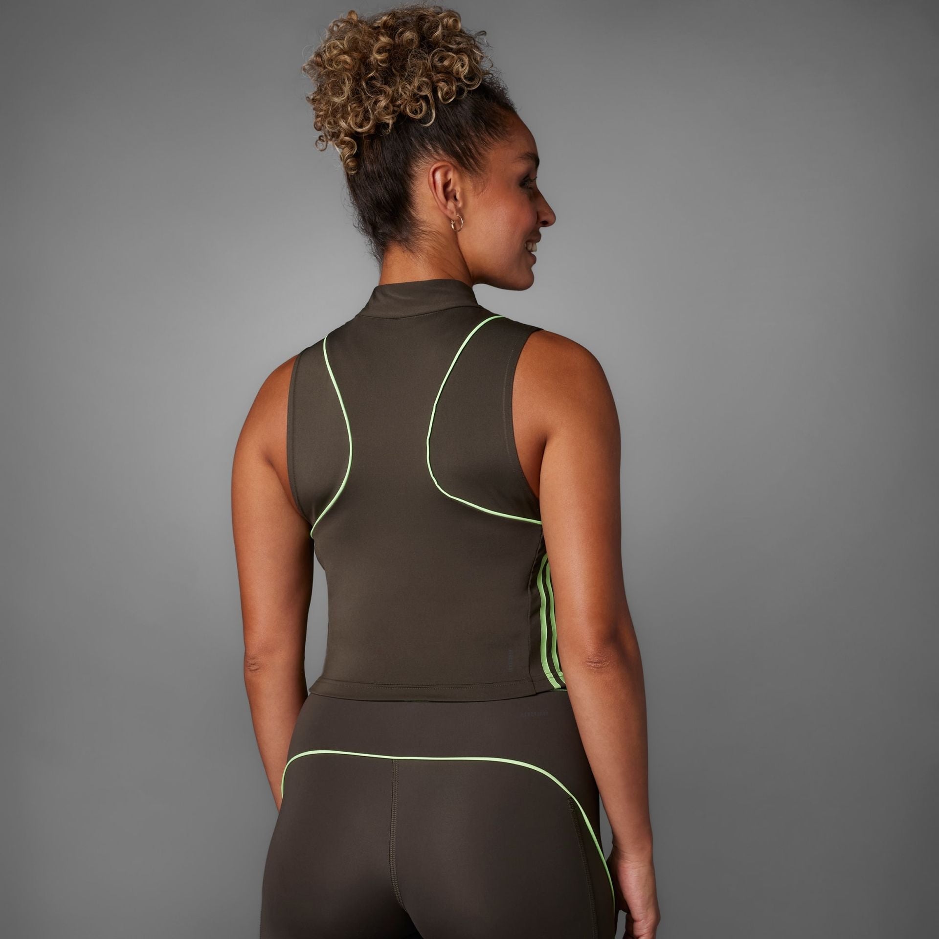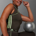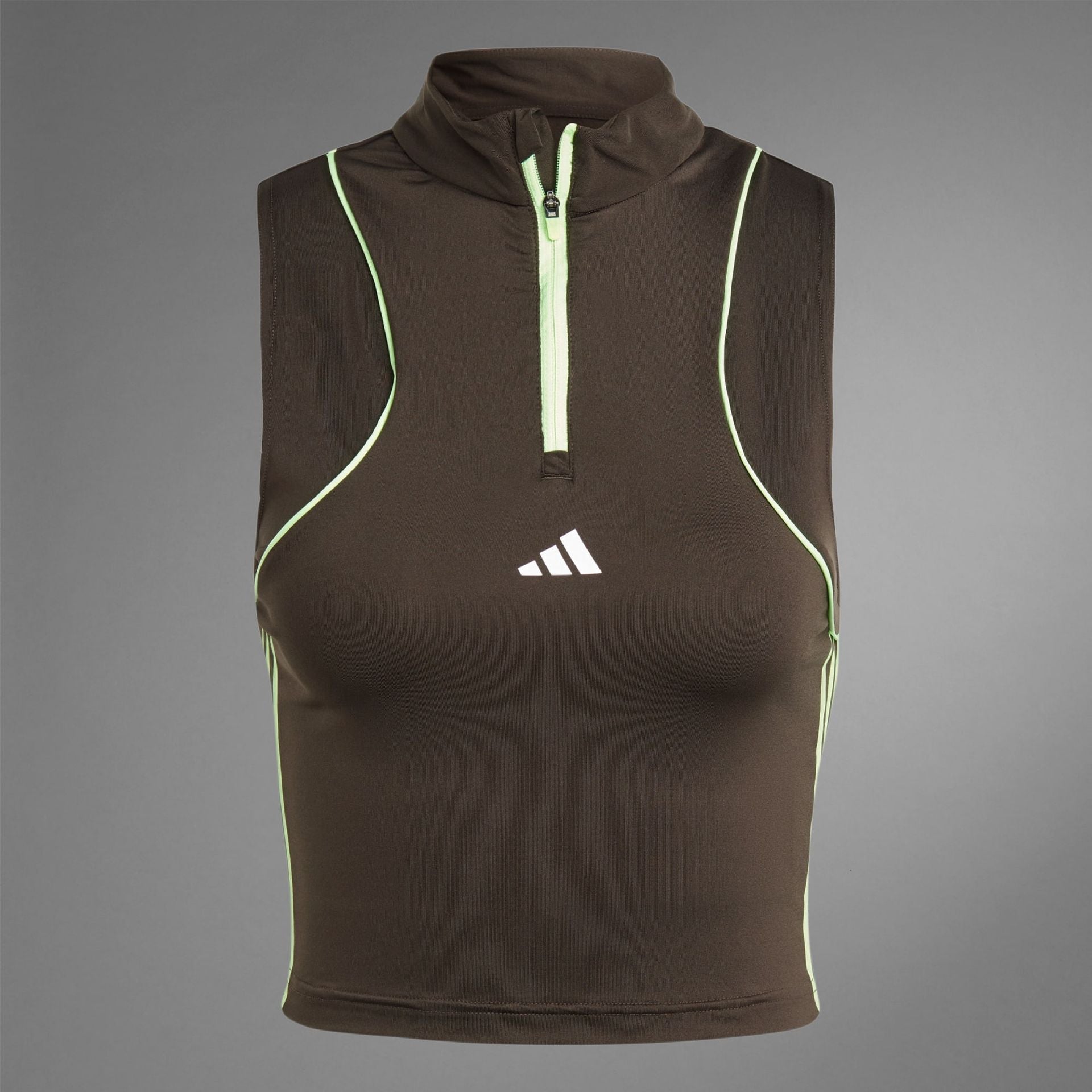 Dance through your day in this adidas training tank top. It has a cropped silhouette, with a half zip and stand-up collar for extra sporty vibes. AEROREADY keeps you dry and comfortable in any workout, while colour-pop piping brings the fun.This product is made with at least 70% recycled materials. By reusing materials that have already been created, we help to reduce waste and our reliance on finite resources and reduce the footprint of the products we make.
