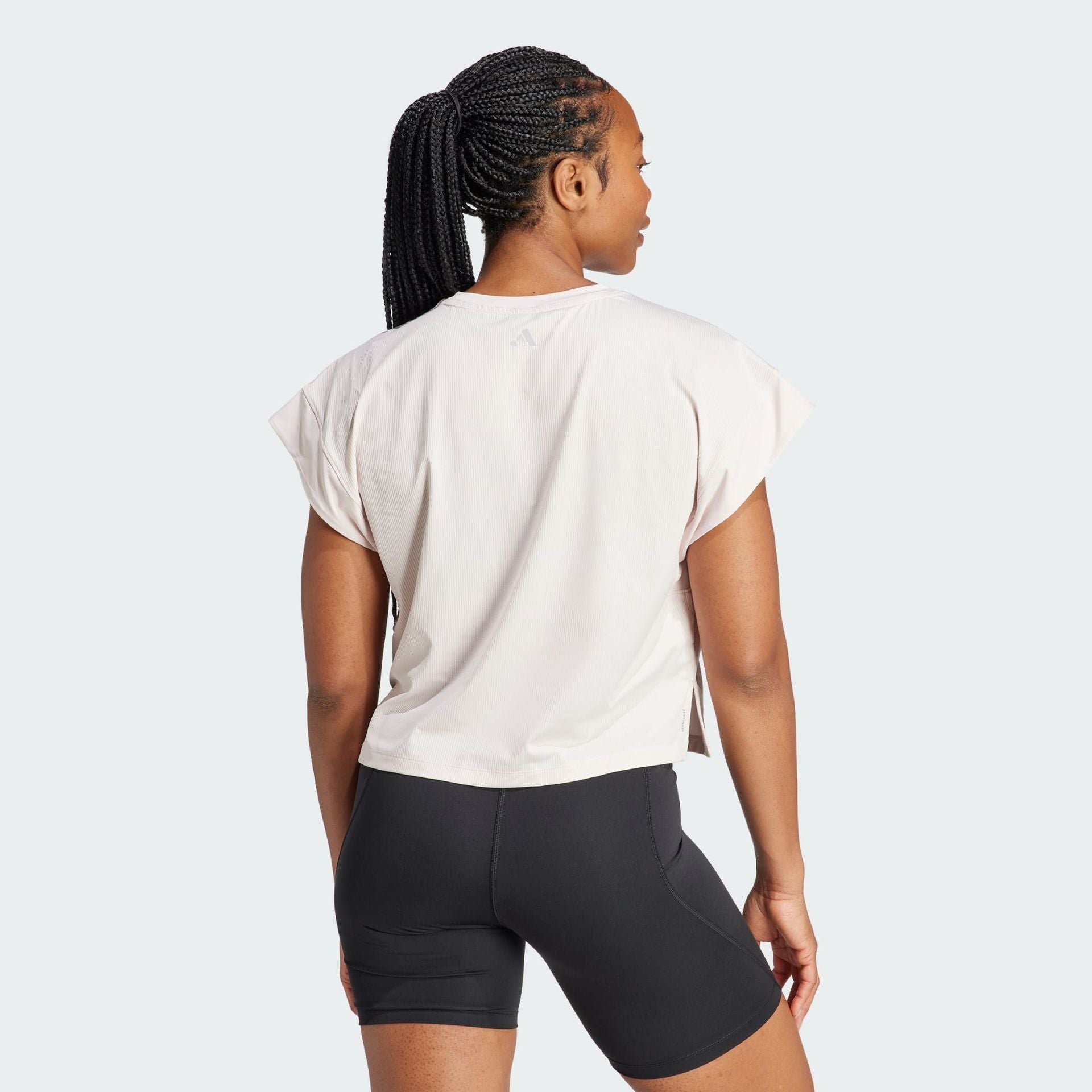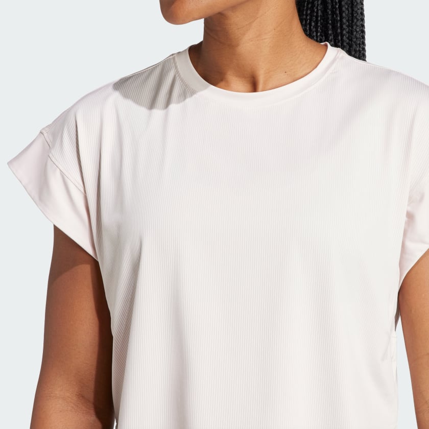 Whether it’s Vinyasa yoga, barre or Pilates, this Studio T-Shirt supports your every move. AEROREADY technology wicks moisture to keep you dry while you hold your poses and balance for longer. Feminine cuts and sleeve details add a dynamic and trendy look. Made from at least 70% recycled materials. By reusing materials that have already been created, we help reduce waste and dependence on finite resources, as well as reduce emissions from the products we produce.