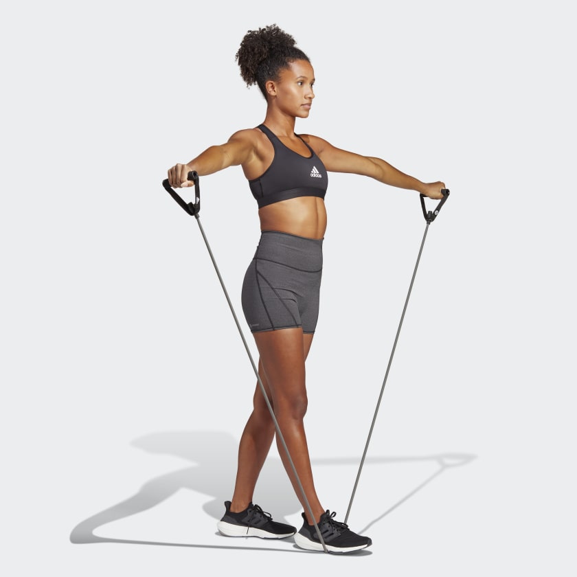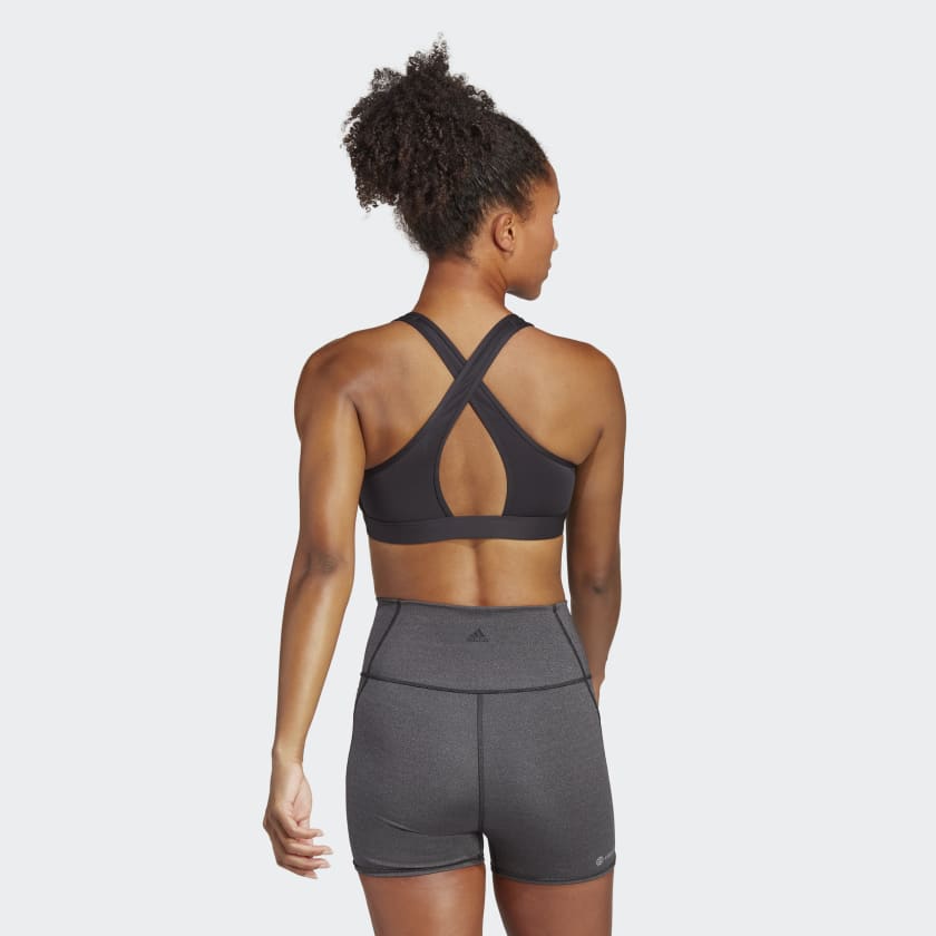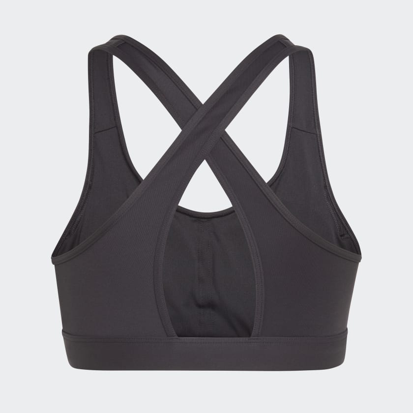 Feel supported, no matter whats on your training schedule. From HIIT to pickup games to cycle class, this adidas medium-support bra helps keep your mind on the movement. The slick fabric is cool to the touch, and moisture-absorbing AEROREADY ensures you stay dry.Made with a series of recycled materials, and at least 70% recycled content, this product represents just one of our solutions to help end plastic waste.