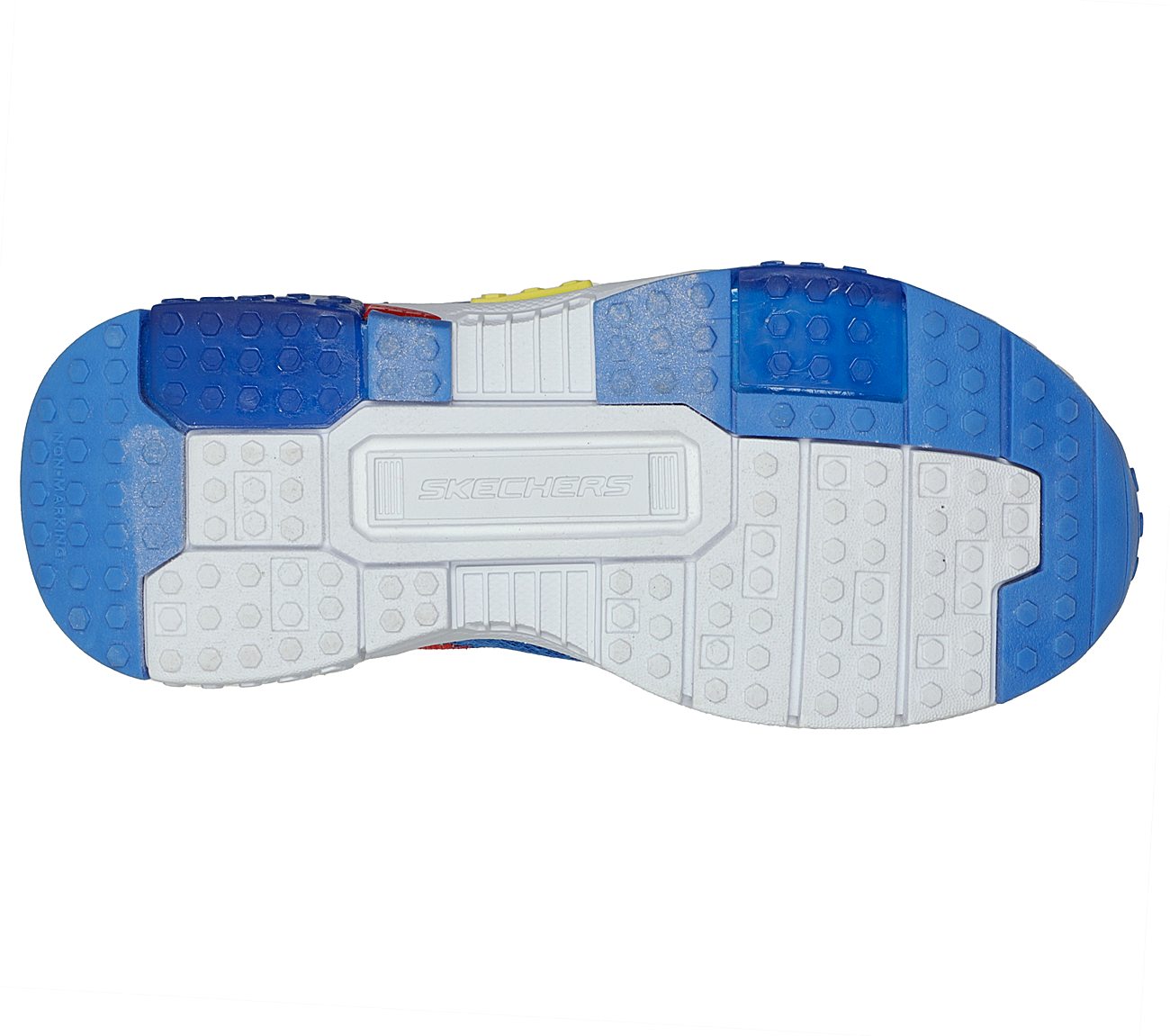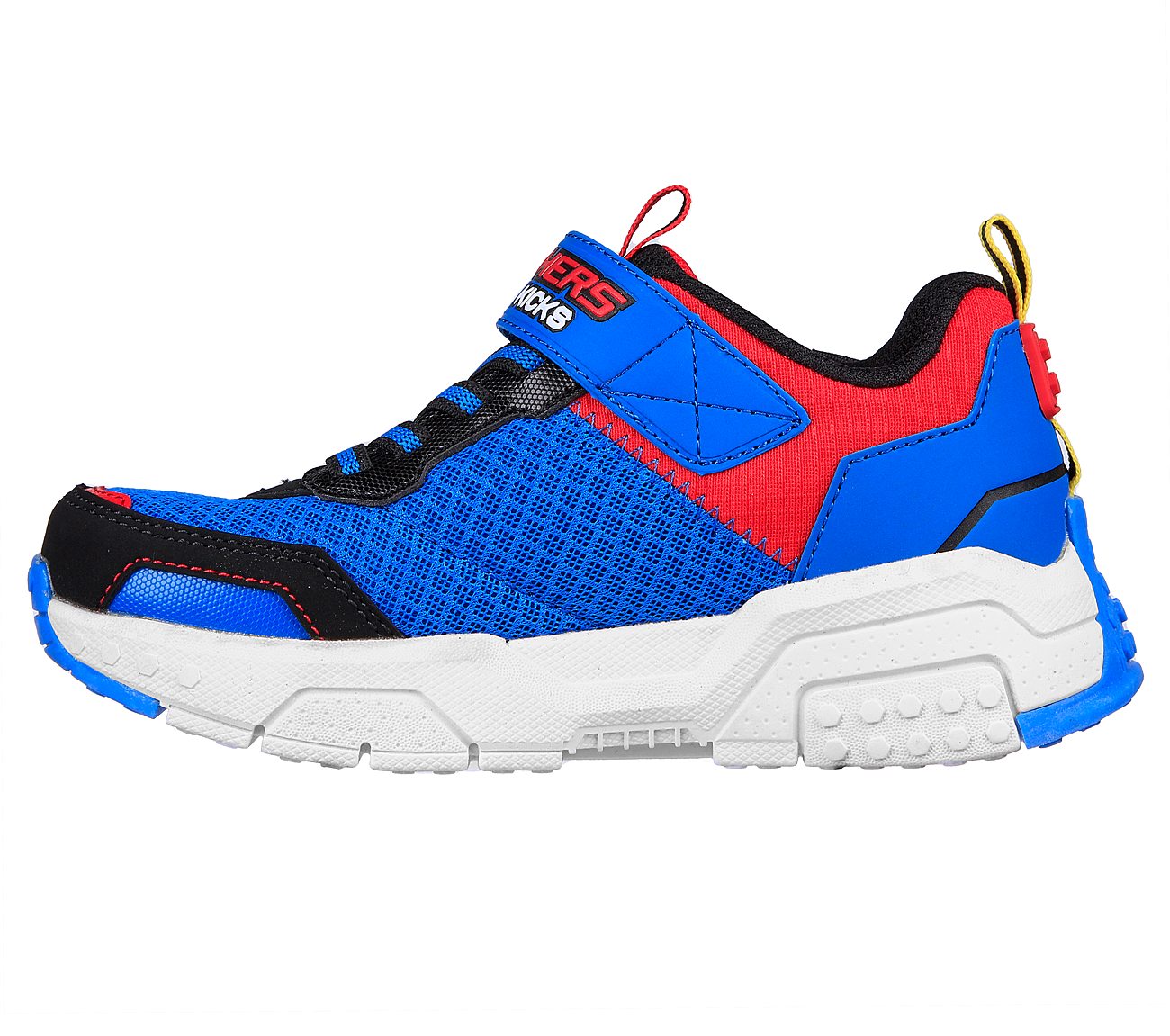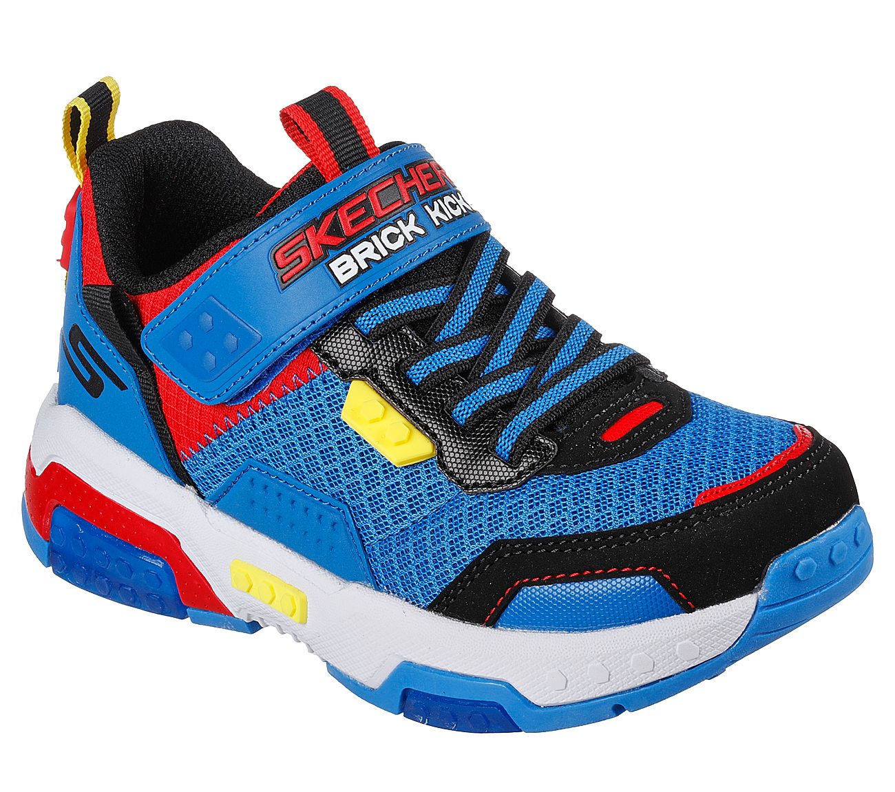 Build up a new colorful look with Skechers Brick Kicks™ 2.0. This playful Brick Kicks™ themed design features a synthetic and mesh upper with stretch laces and a Skechers Air-Cooled Memory Foam® insole.