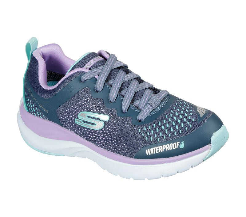 Sporty comfort comes easily rain or shine in Skechers Ultra Groove - Miss Hydro. This lace-up features a waterproof athletic mesh and synthetic upper with a cushioned comfort insole and durable rubber outsole.
