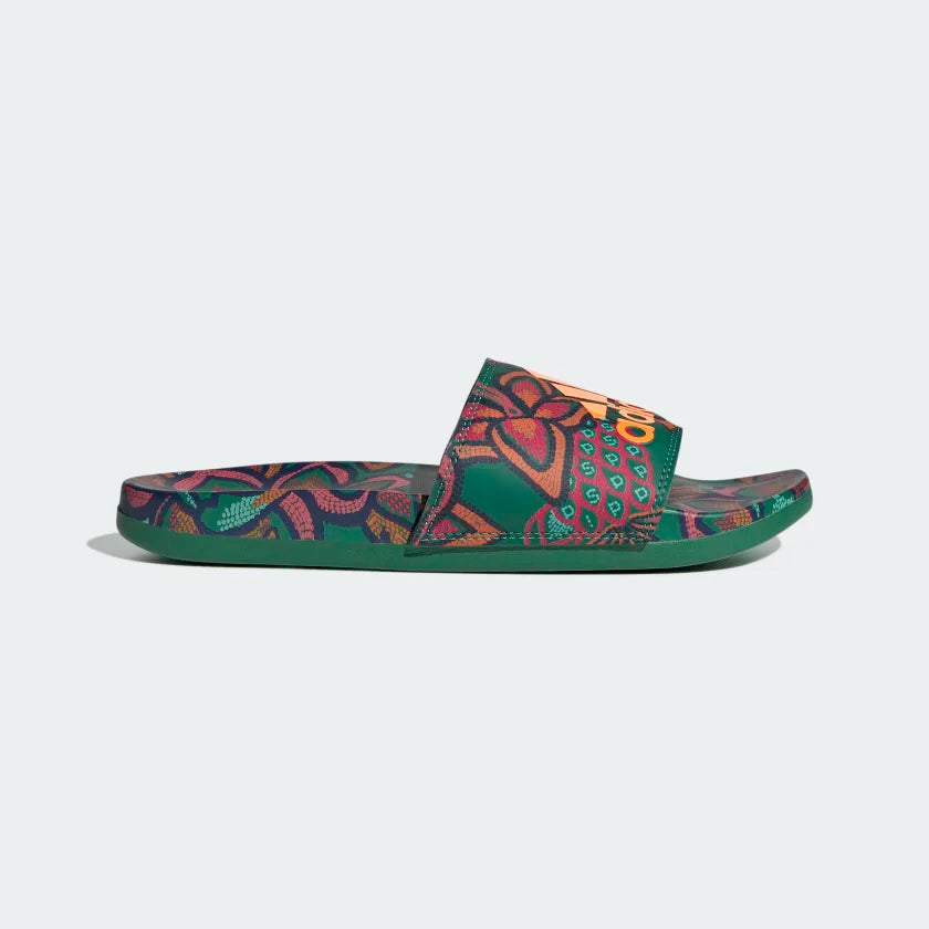 Slide feet first into comfort. These adidas slides are the epitome of versatility and laid-back vibes. A contoured footbed delivers plush cushioning. The classic design features a bandage upper with 3-Stripes branding.