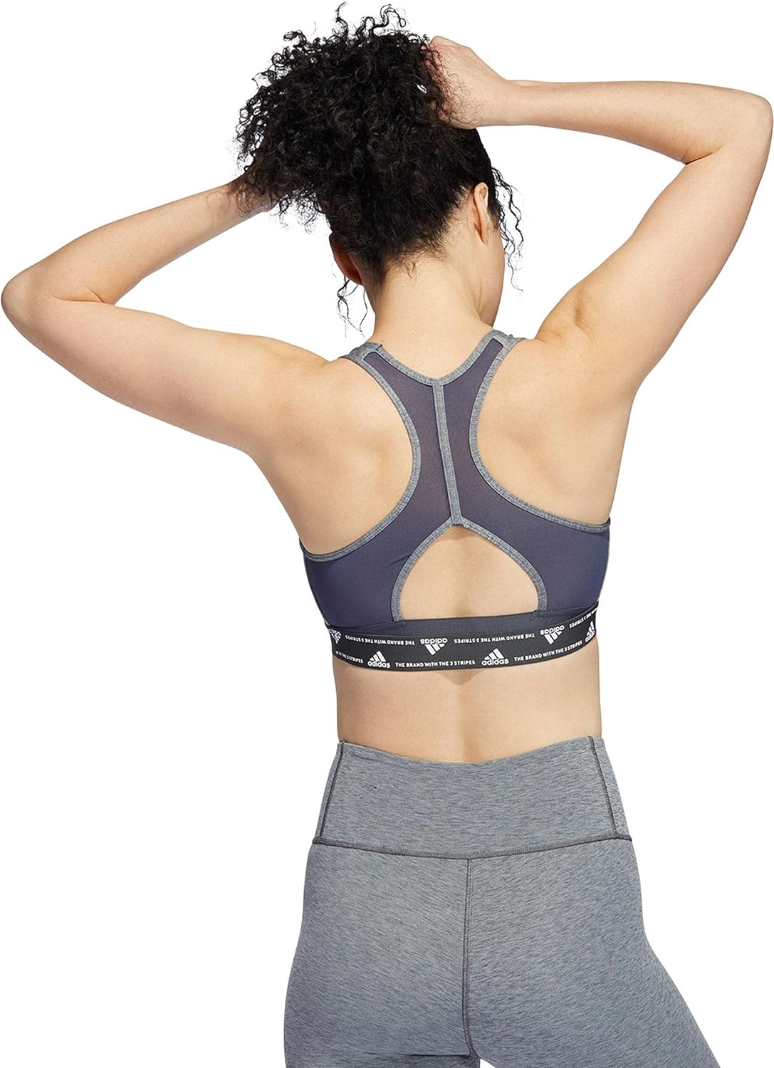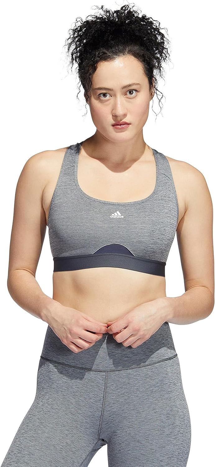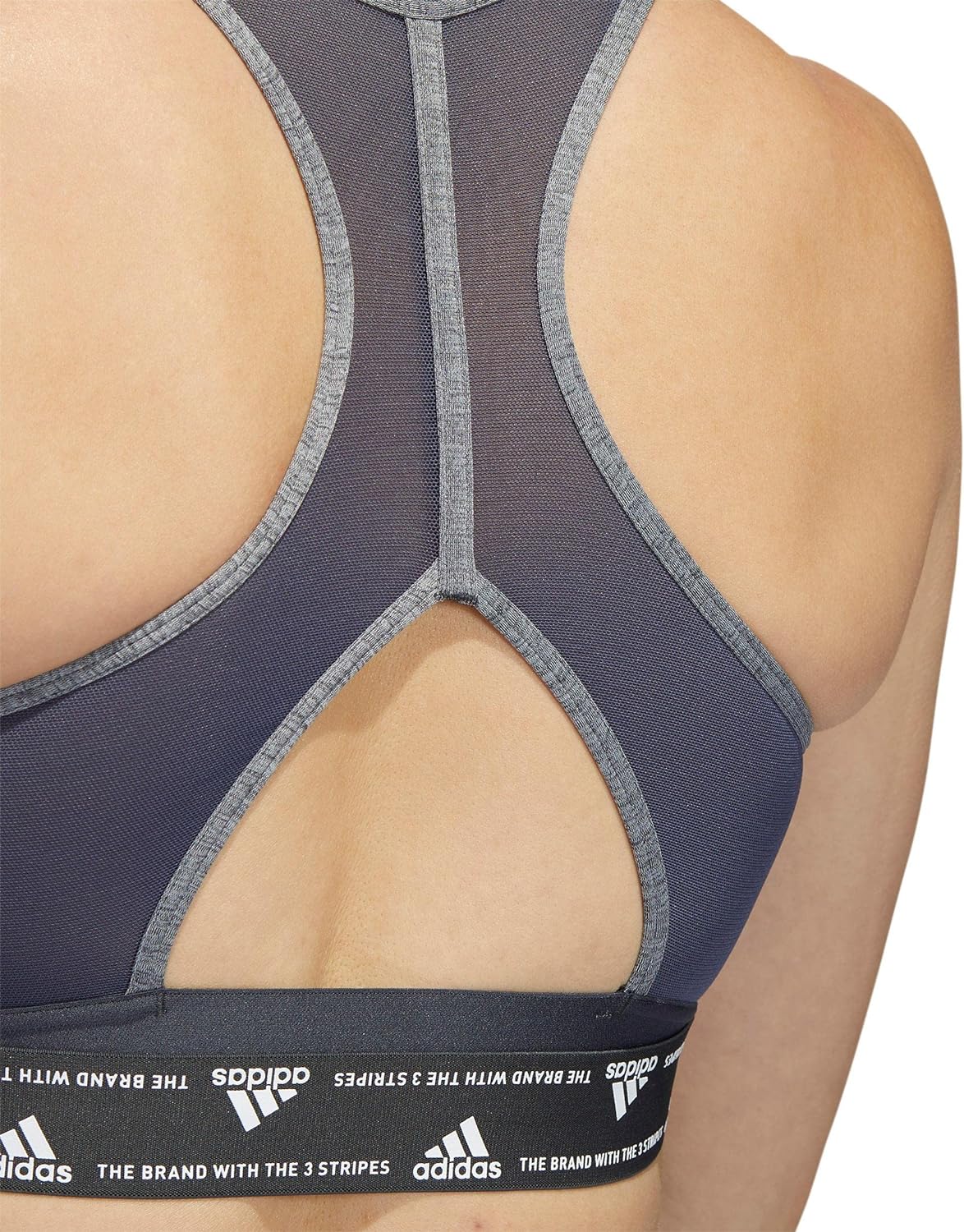 The first drop of sweat on your chest should not be a distraction. Take it as a sign of your work and let this sports bra adidas do its job from there. The breathable fabric is soft and cool. AEROREADY moisture wicking keeps you dry and comfortable, and the breathable mesh details take that comfort a step further by increasing airflow to provide cool relief. Bring out the best in yourself. That's exactly what this bra was designed to do.