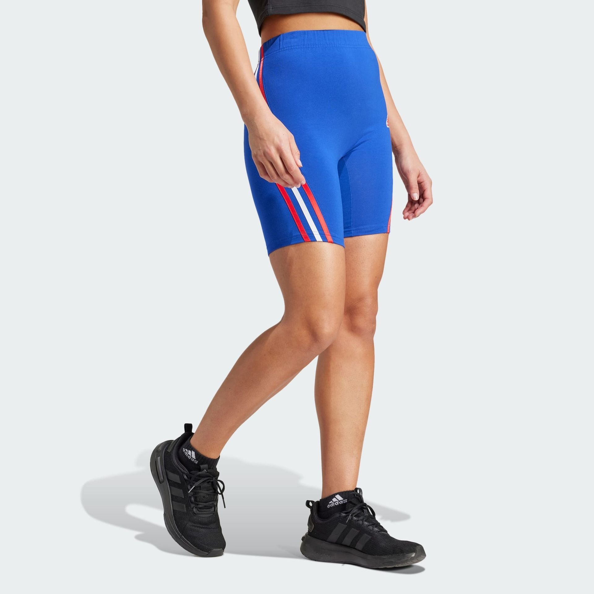 Celebrate your sporty side in these adidas biker shorts. The iconic 3-Stripes are decorated in the colors of the French flag. Made from soft, stretchy fabric, these shorts keep you comfortable whether you're cheering on the athletes or relaxing with friends.