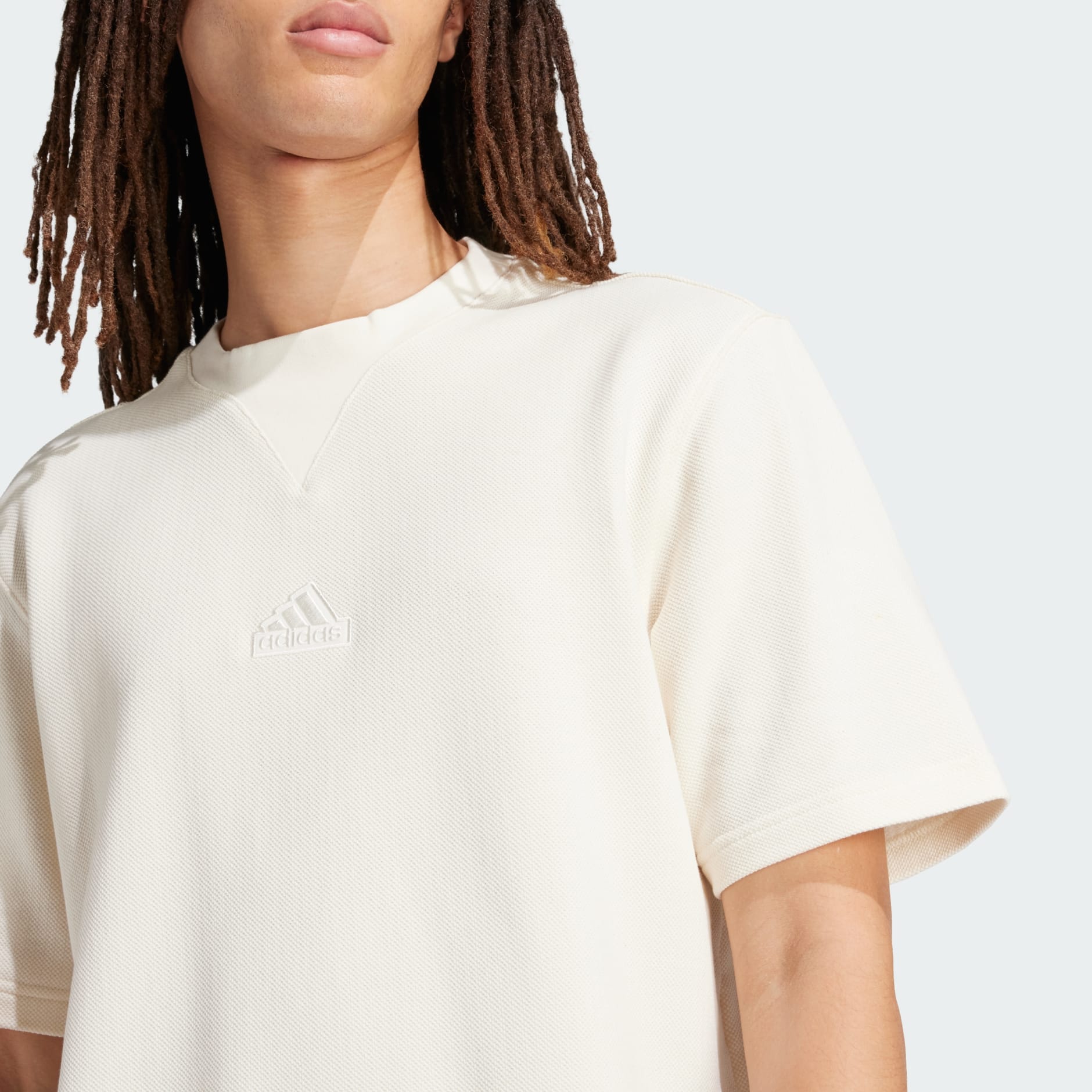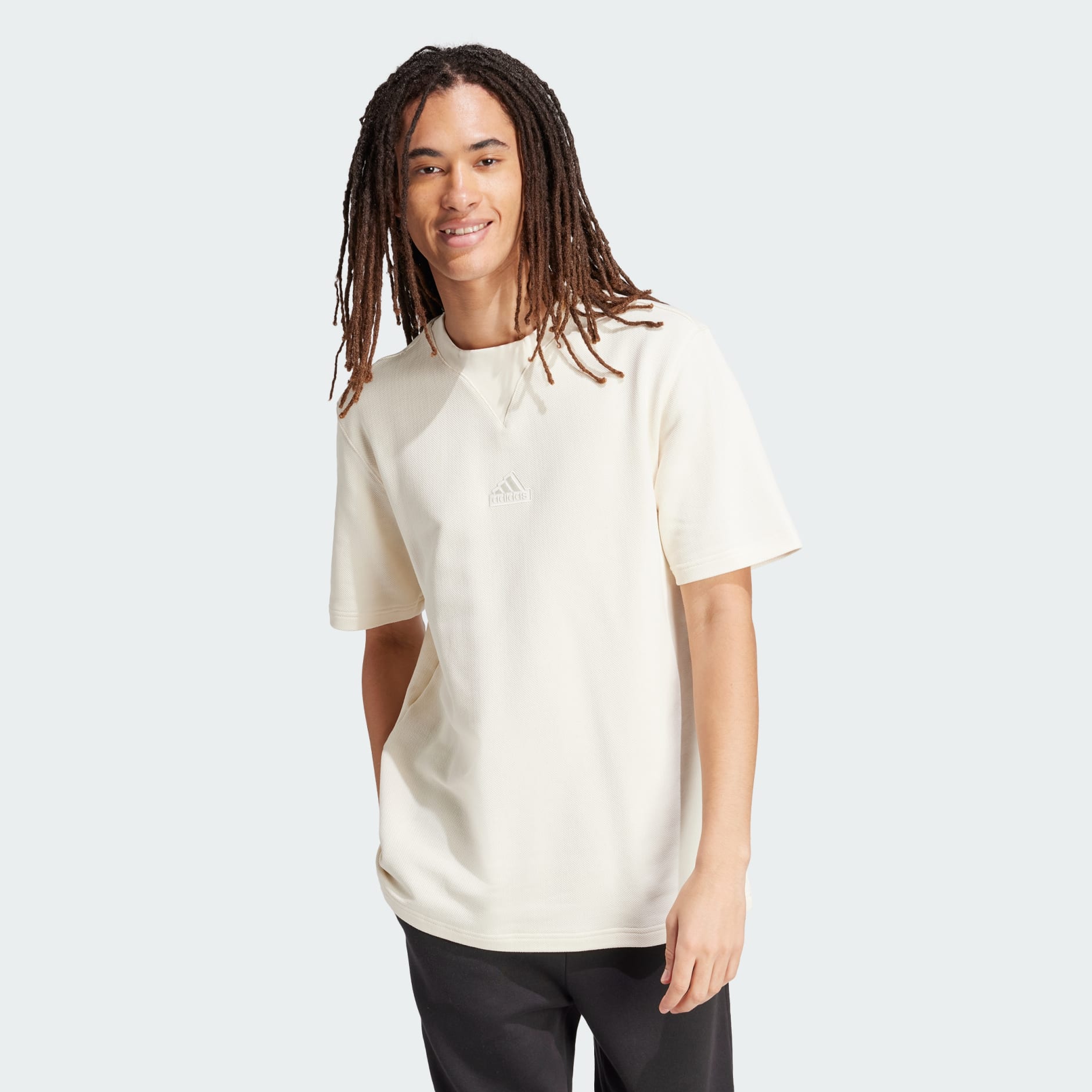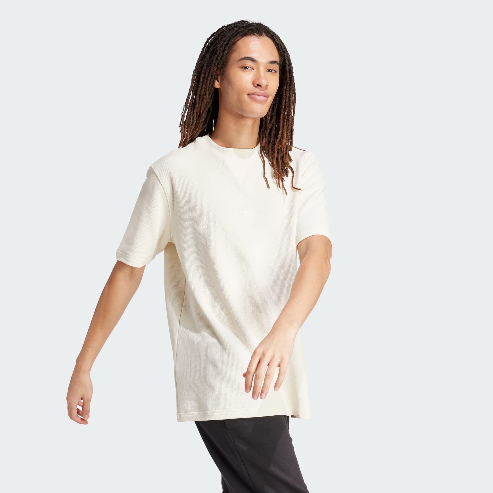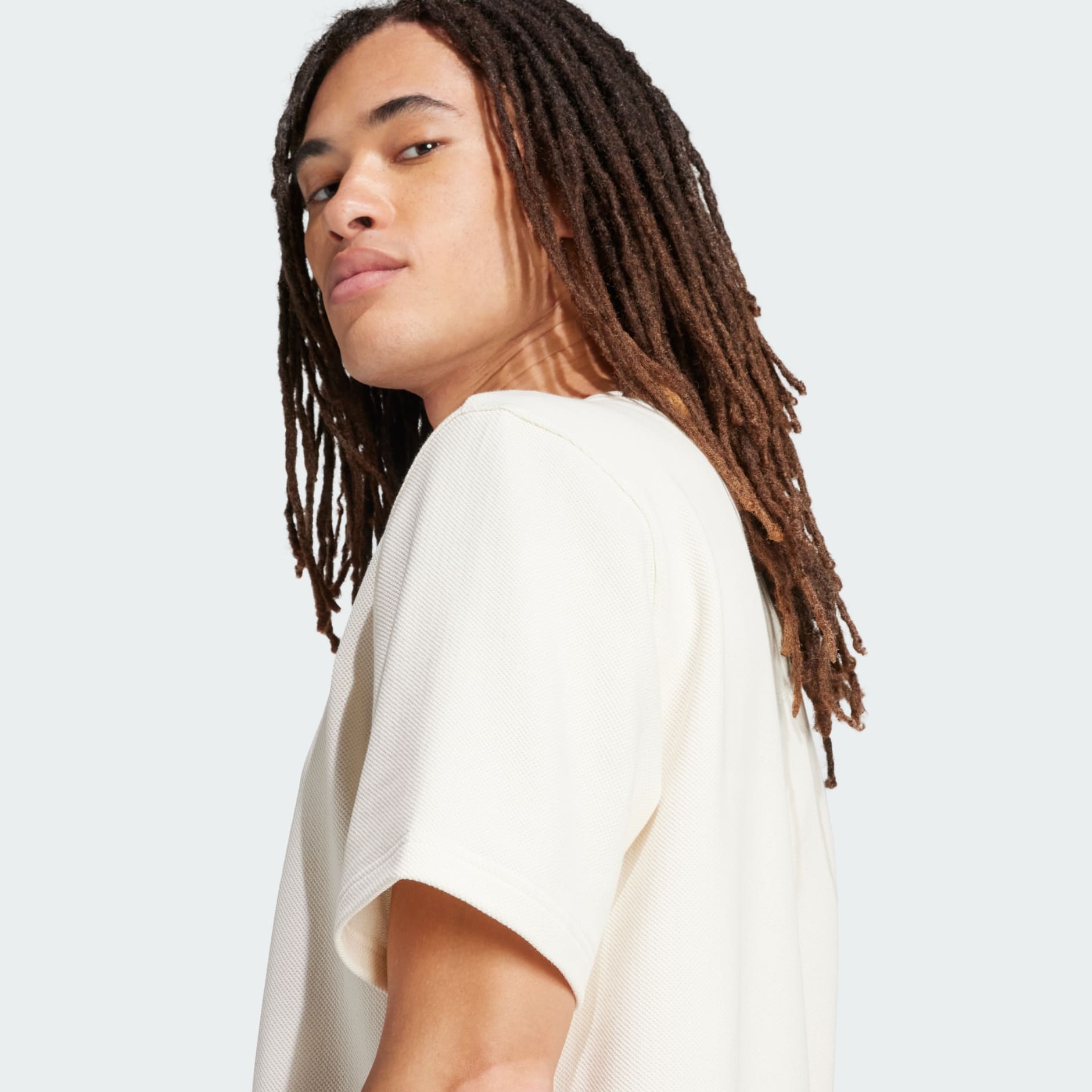 T-shirt cut, French terry feel. This loose, lounge-ready terry tee from adidas has your back whether you're heading out for coffee or cosying up on the couch. The cotton blend fabric keeps things casual yet stylish, allowing you to express your laid-back personality as you slip into relax mode.