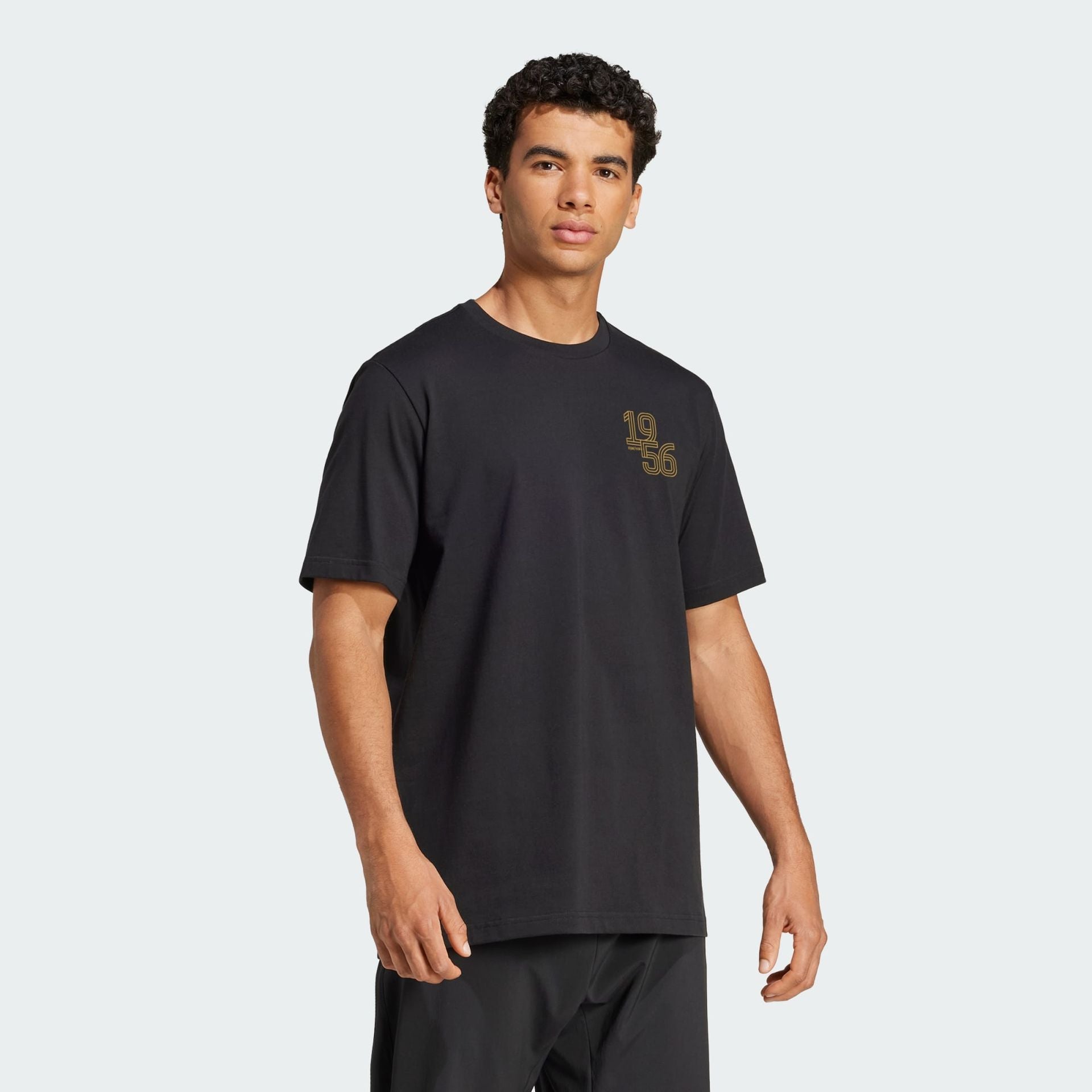 Wear your support for Real Madrid with pride. This comfortable cotton football tee from adidas celebrates the first of the club's record-breaking European triumphs in 1956. Featuring a bold graphic that highlights the host city, Paris, and one of goals, it's perfect for cheering on today's team when match day comes around.