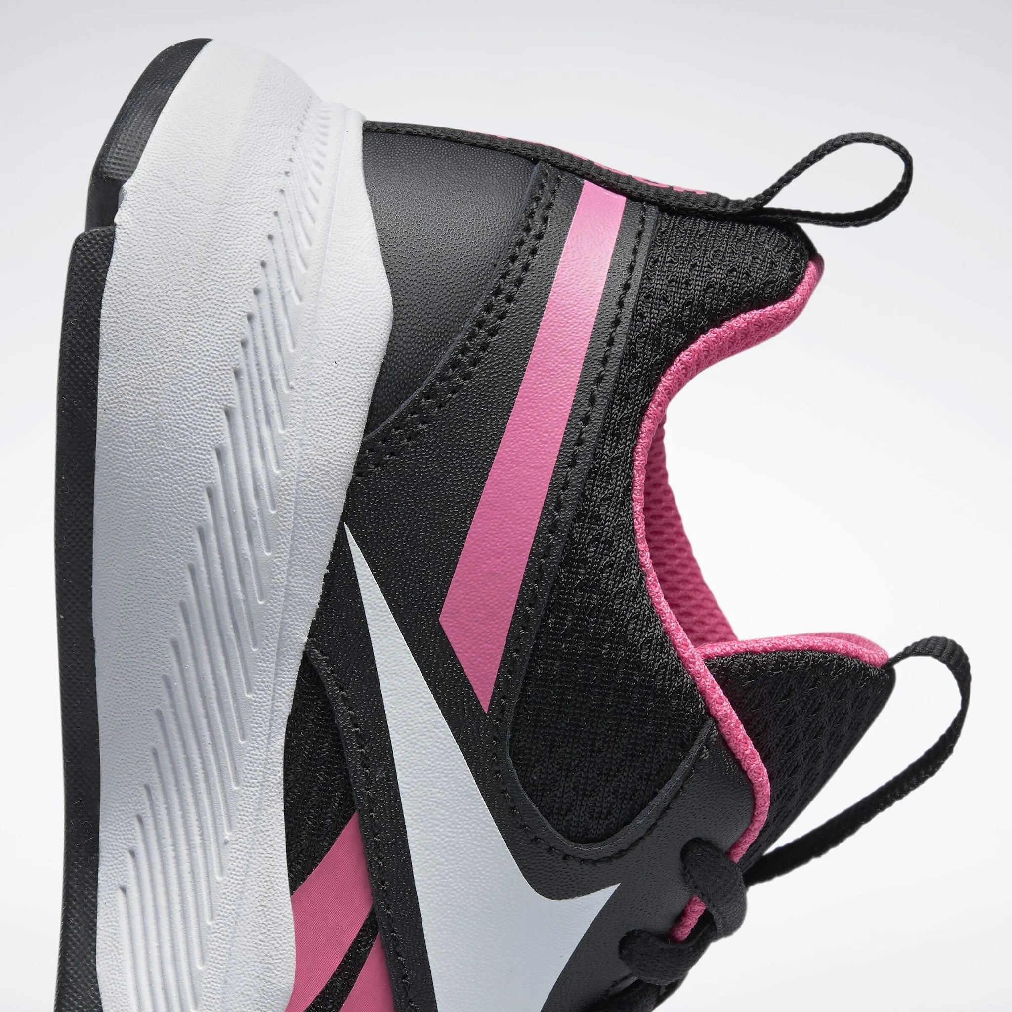 Catch her if you can. Your kid is on the go, and these girls' Reebok shoes give her the support she needs to play hard all day. The leather upper holds up to wear and tear, and the grippy rubber outsole gives her solid traction for all her adventures.
