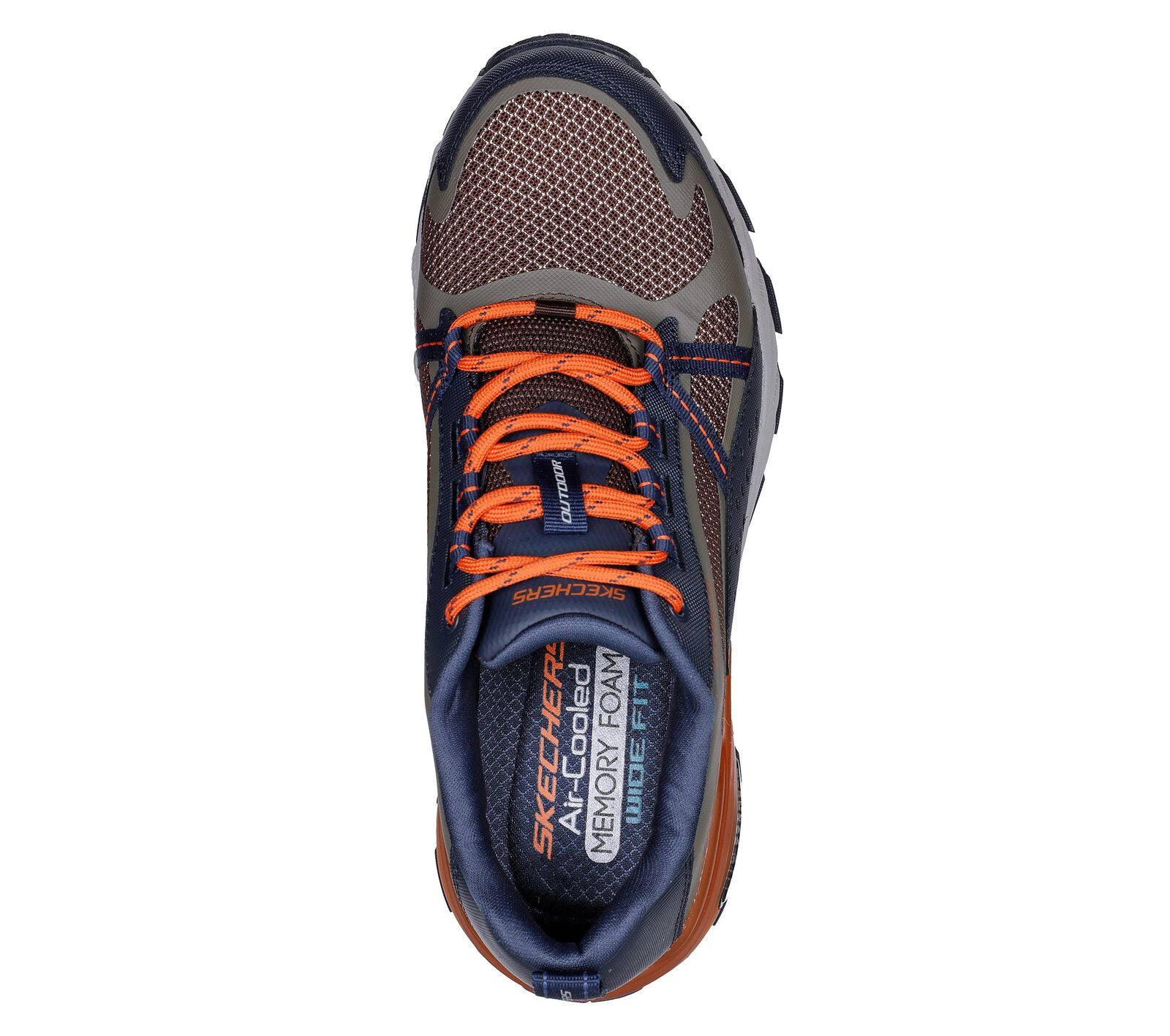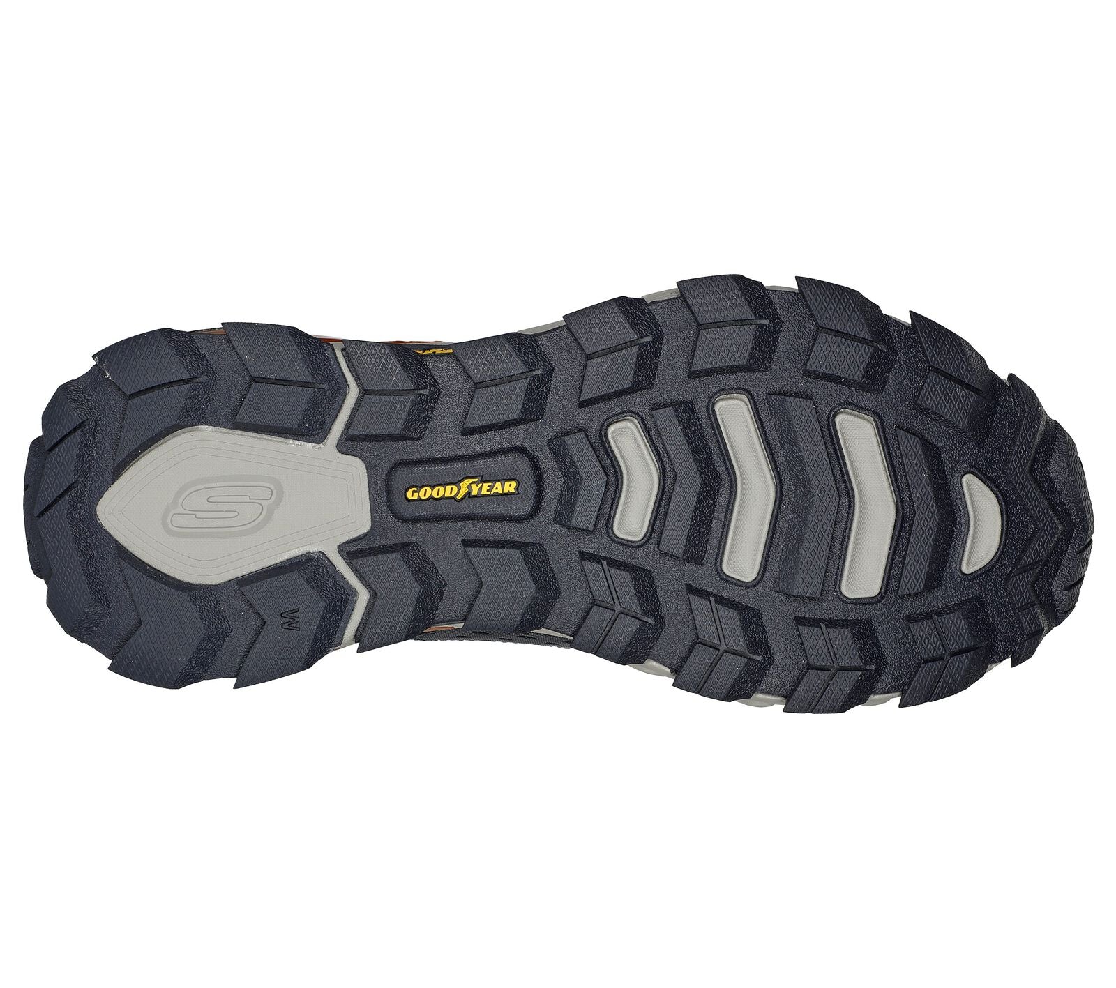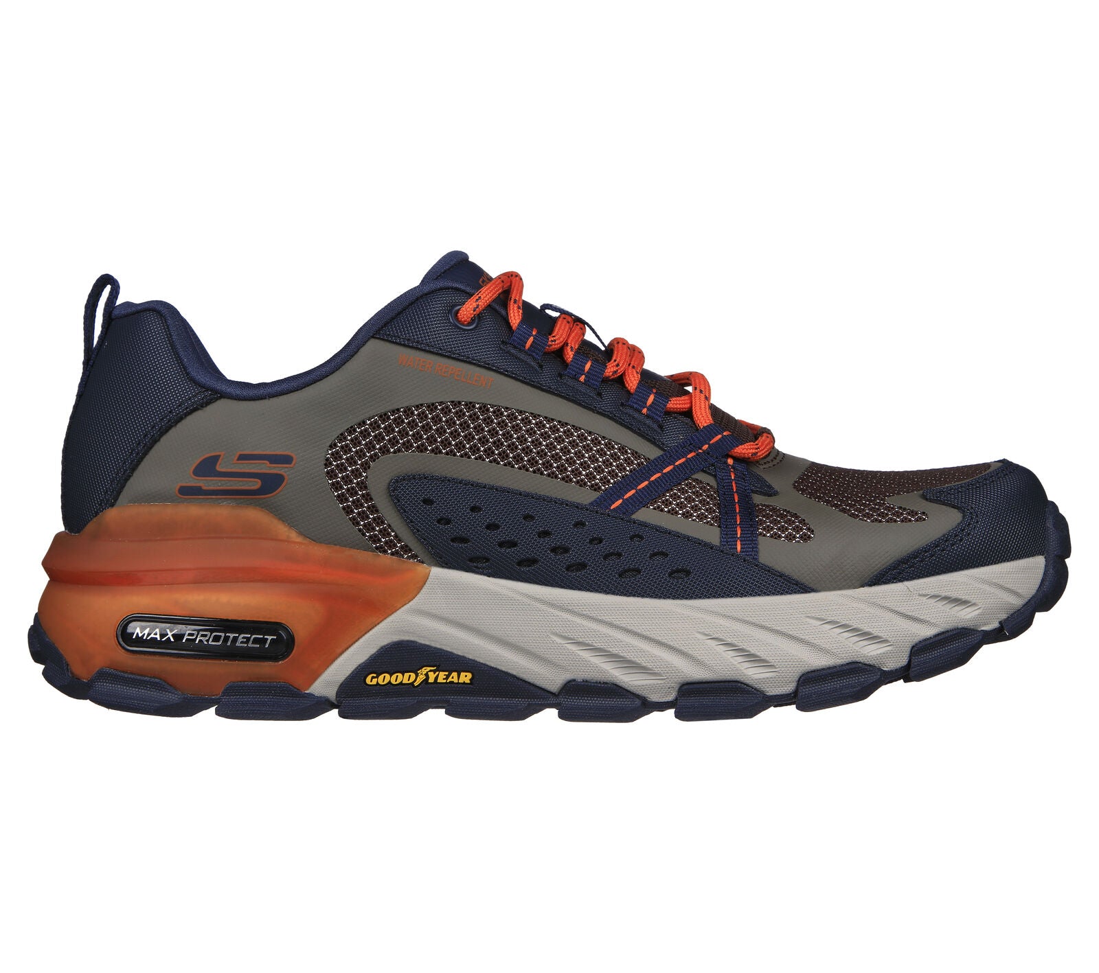 Skechers Max Protect will have you striding through your day in comfort. This shoe features a leather and mesh upper that is water resistant, Air-Cooled Memory Foam® insoles and Goodyear® performance outsoles