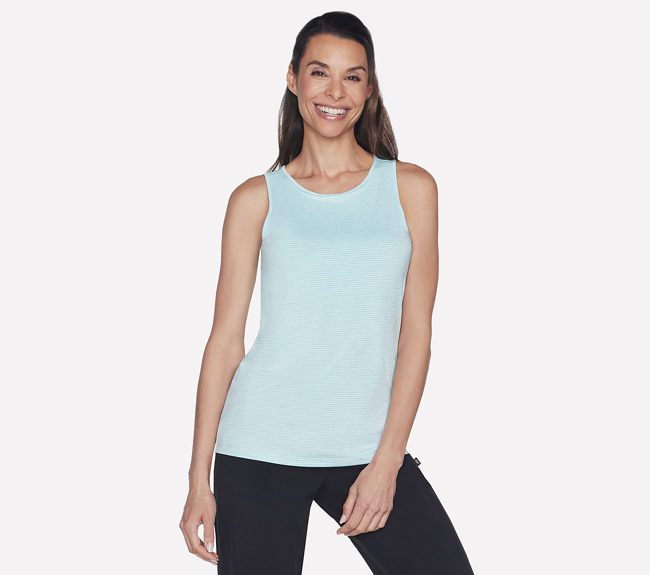 Lightweight supportive comfort that'll take you from yoga to errands with ease wearing the Skechers GO WALK Wear™ Motion Stripe Shelf Bra Tank. This athletic bra tank features a soft moisture-wicking and quick-drying GO DRI® fabric, light support, interior shelf bra with removable cups and a racerback silhouette.
