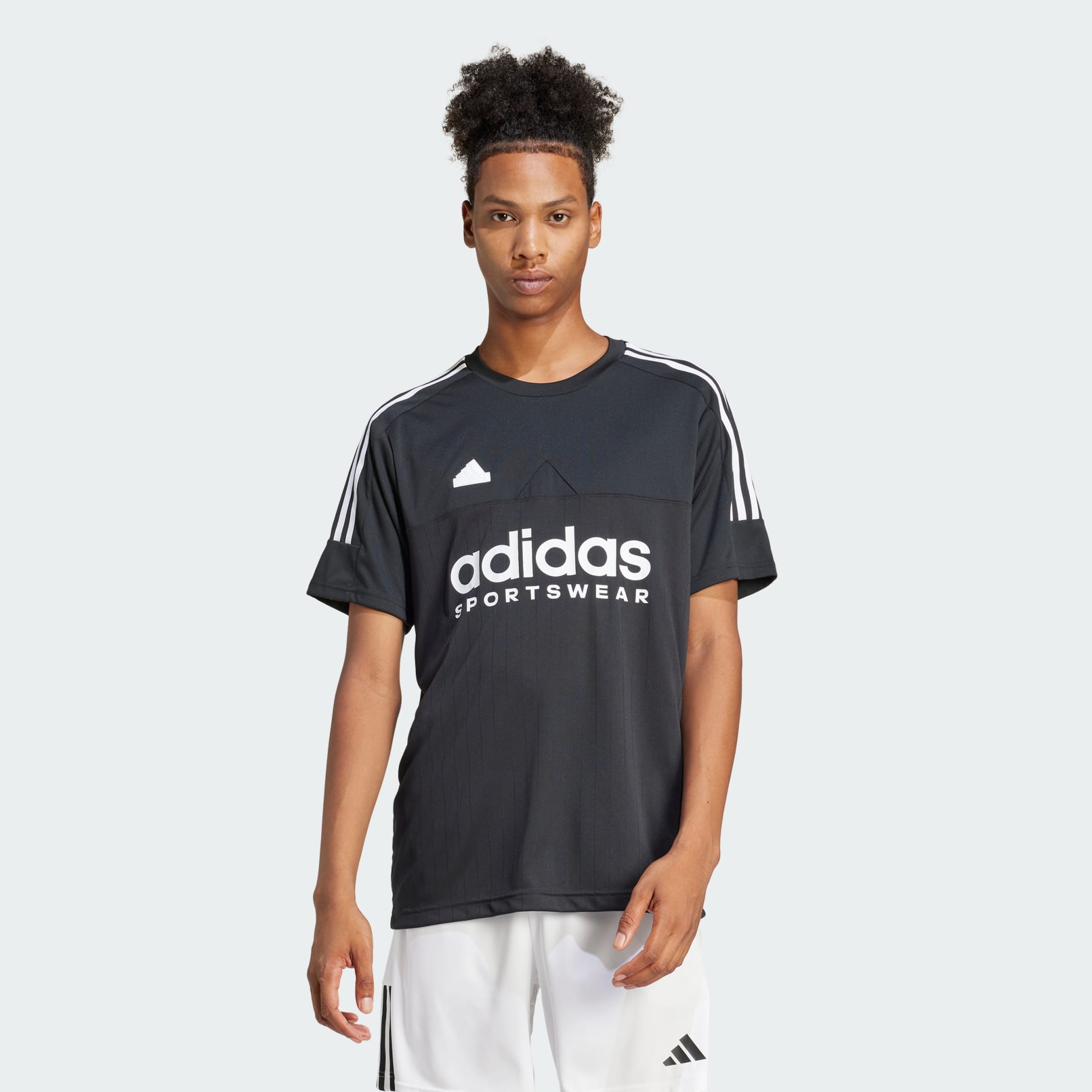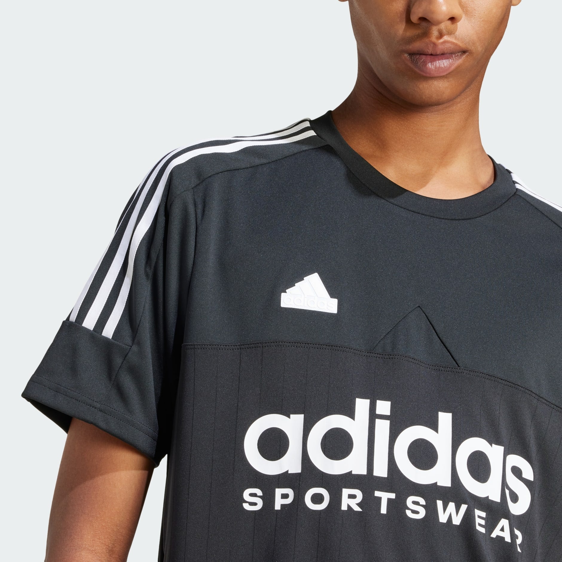 Ready for a stylish adventure, this adidas t-shirt fuels your street style with football-inspired details. The iconic 3-Stripes branding adds a bold pop of adidas heritage. Whether you're gallery hopping or catching up over coffee, this tee keeps you comfortable so you can focus on the moment. Live life at your own pace in a t-shirt that can keep up. This product is made with 100% recycled materials. By reusing materials that have already been created, we help to reduce waste and our reliance on finite resources and reduce the footprint of the products we make.
