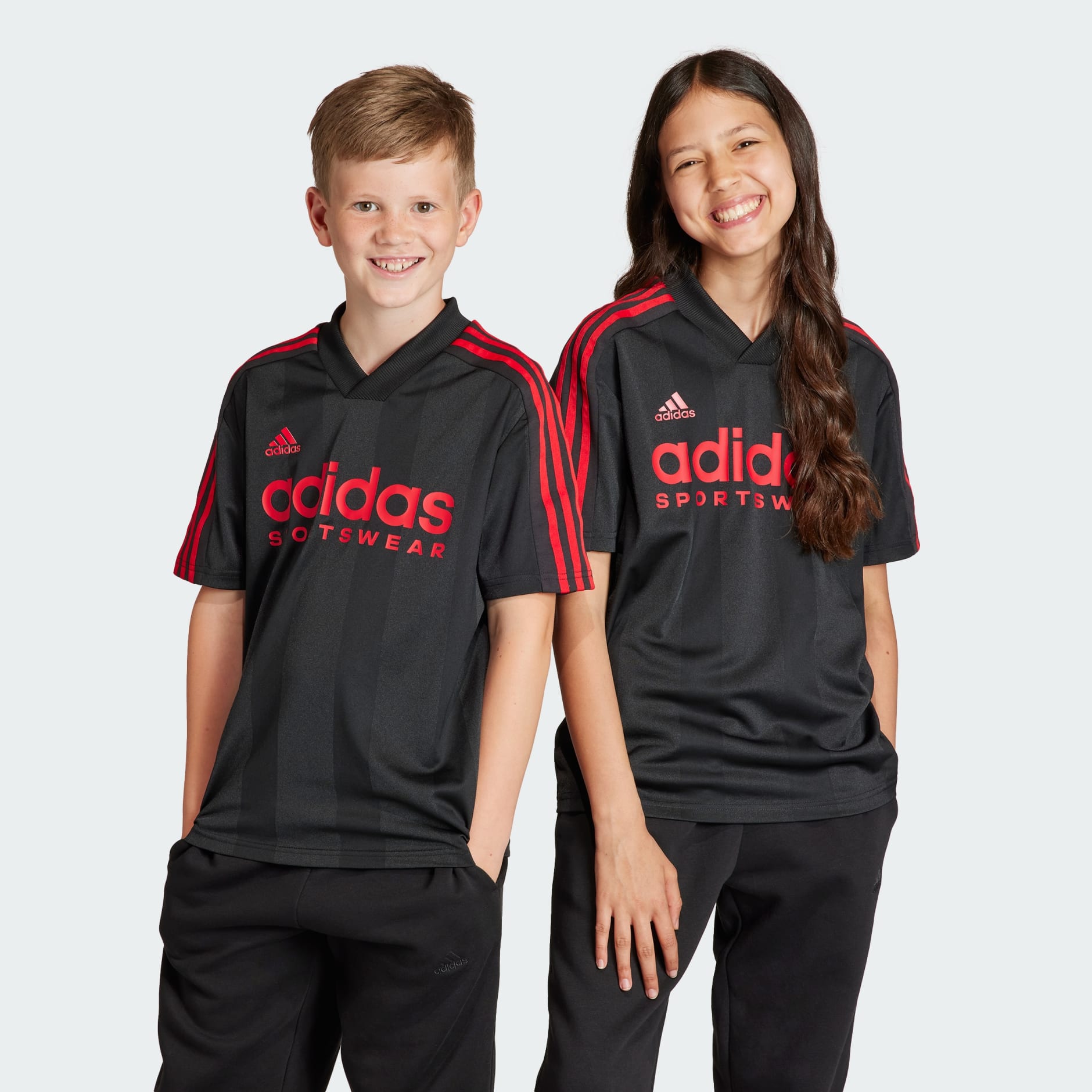 This juniors' Tiro tee pays homage to the women making history on football's biggest stage. Because it's time to celebrate those who break barriers, including you. The loose fit promises easy-moving comfort. A V-neck design and a shiny, striped design recalls iconic football jerseys. Made with 100% recycled materials, this product represents just one of our solutions to help end plastic waste.