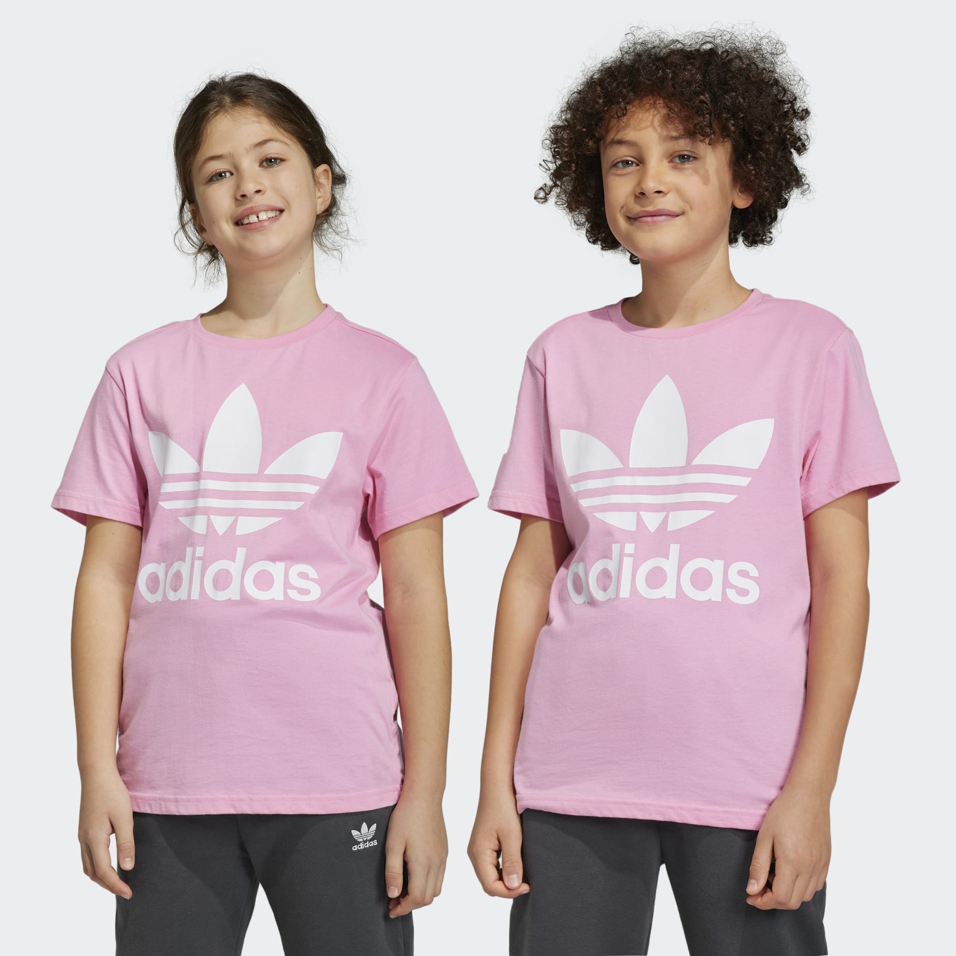 The Trefoil logo debuted on the world stage in 1972. It has stood for sporty style ever since. This juniors' t-shirt celebrates its legacy with an oversize Trefoil logo print. It's made of an all-cotton jersey for an ultra-soft feel.