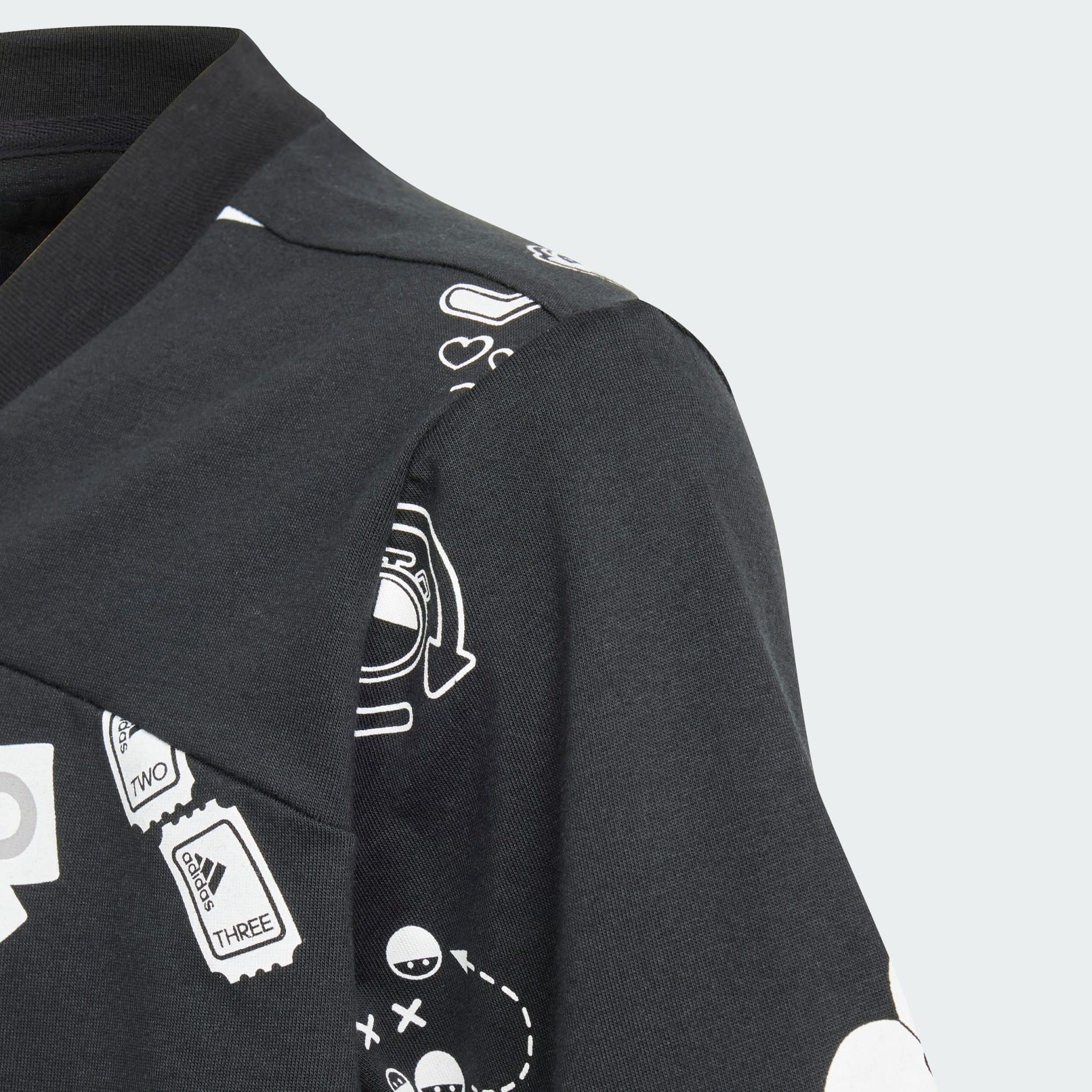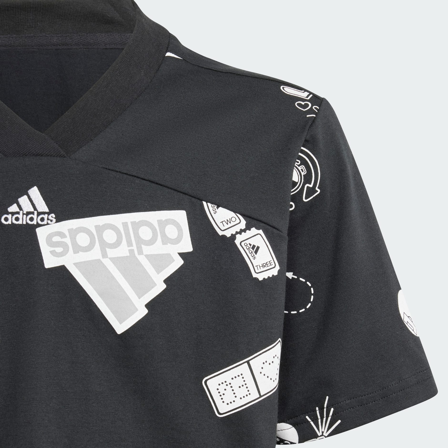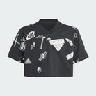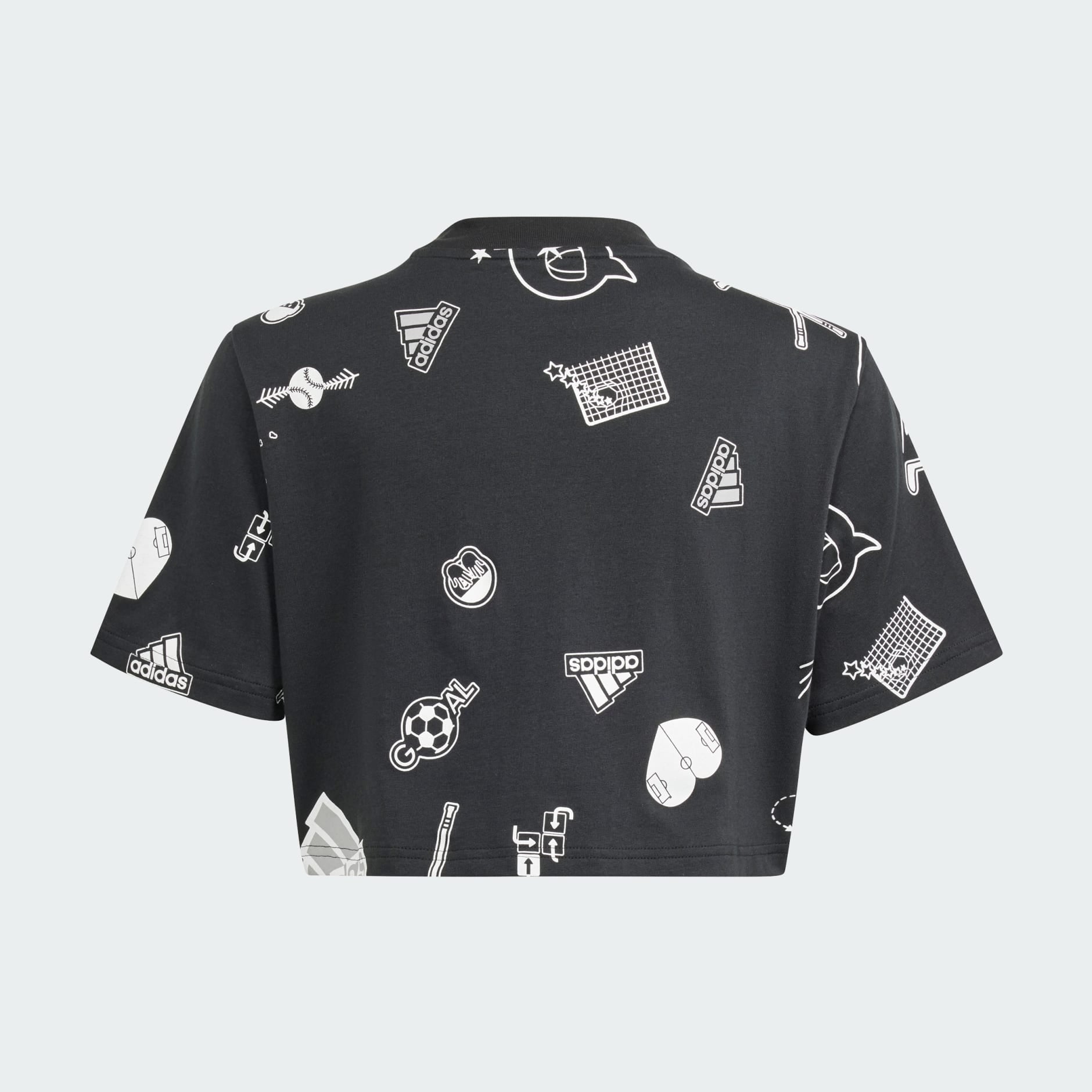 Celebrate a connection to your contemporaries in this loose-fitted cropped t-shirt from adidas. Inspired by athletes, the v-neck and cutline shapes a playful silhouette for sporting your style. Express your authentic spirit with a rubberized icon and logo graphic that reads across soft cotton. All about fun and camaraderie, this top lets you show up for your generation.