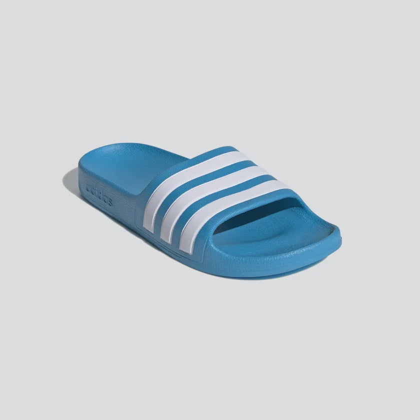 Show off their adidas DNA in these kids' slides. The shower-ready slides have a one-piece moulded upper with 3-Stripes across the top. A soft, cloud-like footbed is made with quick-dry cushioning for easy comfort.