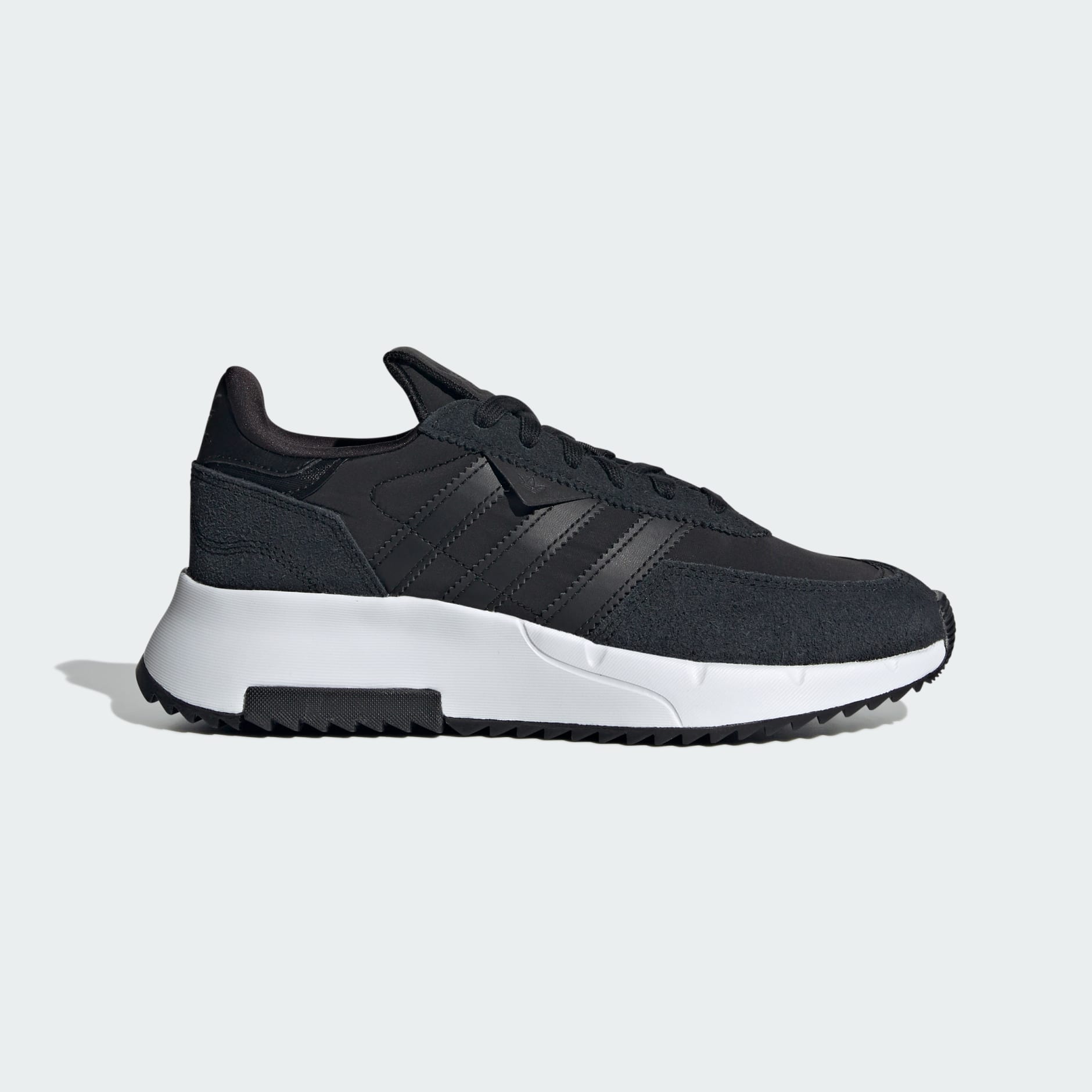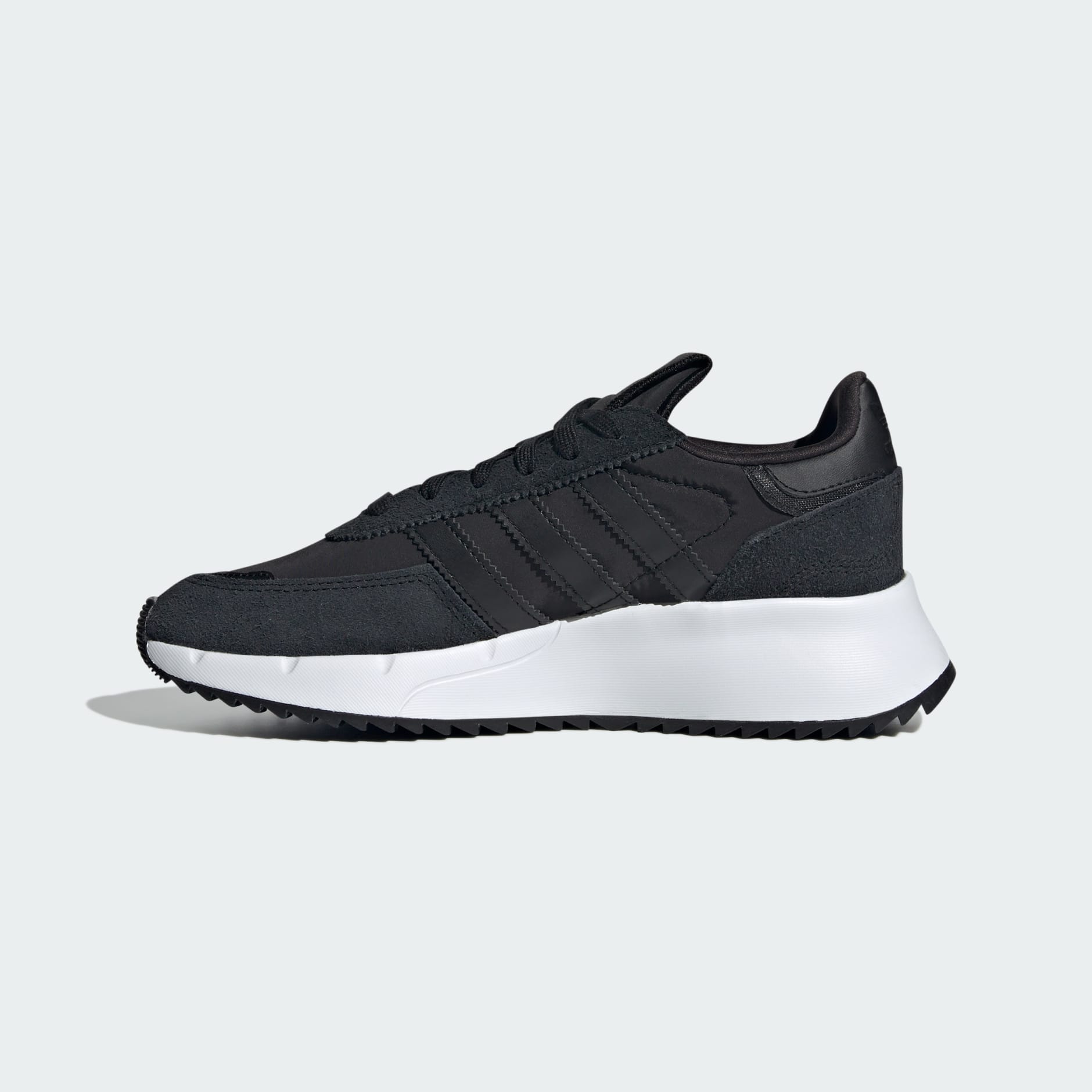 Can't decide between retro and right-now? With the adidas Retropy, you get both. These juniors' shoes have a modern, pared-down look with pops of nostalgic style. Track-inspired styling gives them that casual, easy-to-wear vibe. A soft, cushioned outsole will take you as far as you want to go. Made in part with recycled content generated from production waste, e.g., cutting scraps and post-consumer household waste, to avoid the larger environmental impact of producing virgin content.