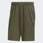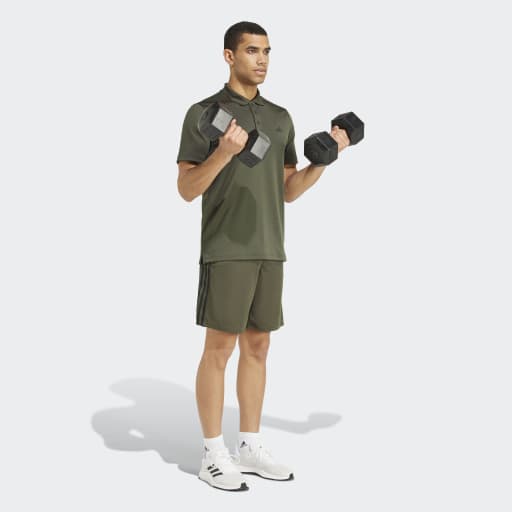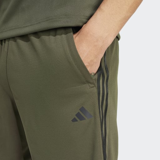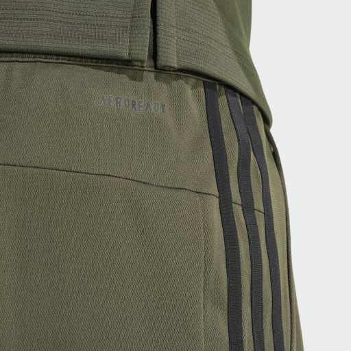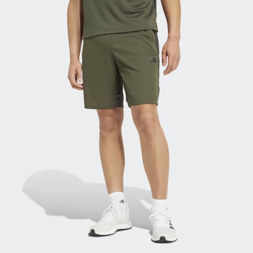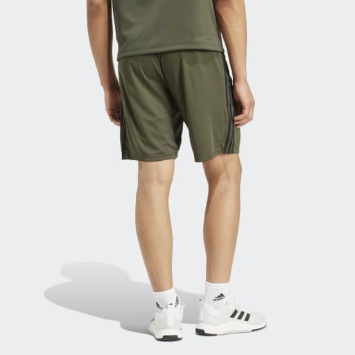 TRAIN ESSENTIALS PIQUÉ 3-STRIPES TRAINING SHORTS - Shadow Olive / Black