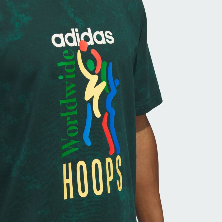 From layups to deep jumpers, this adidas tee is engineered to fuel your global basketball lifestyle. A loose fit and cotton single jersey build keeps you moving comfortably through every crossover and spin move. An iconic '90s-inspired graphic shouts out basketball all over the world. Wherever the game takes you, this tee brings players together through a shared love of the sport.
