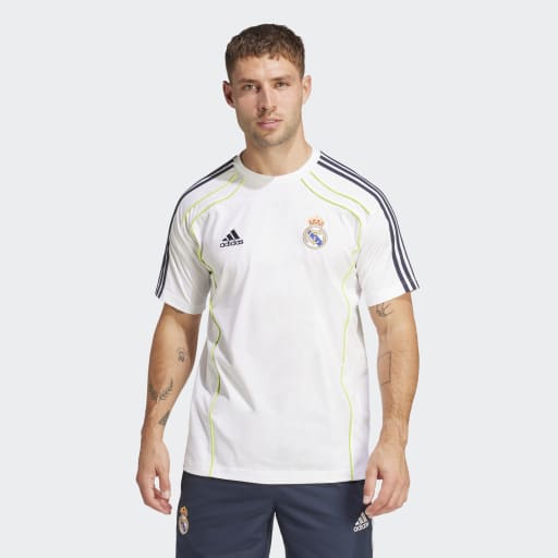 Show your passion for Real Madrid in this clean, classic tee from adidas. Created to give off match day vibes from the 2010s, it's built from soft single jersey fabric to offer breathable comfort every time you pull it on. Embroidered onto the chest, that famous club badge has been a symbol of excellence across every football era. By choosing recycled, we are able to reuse materials that have already been created, which helps to reduce waste. Renewable materials choices will help us to remove our reliance on finite resources. Our products made with a blend of recycled and renewable materials feature at least 70% total of these materials.