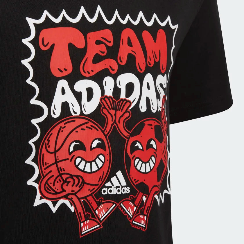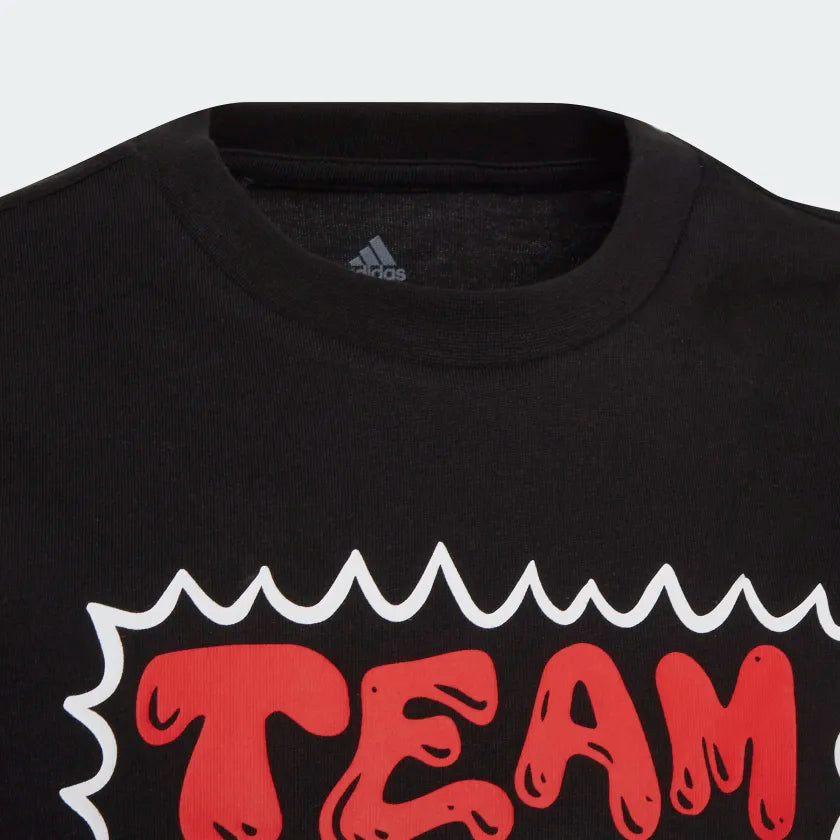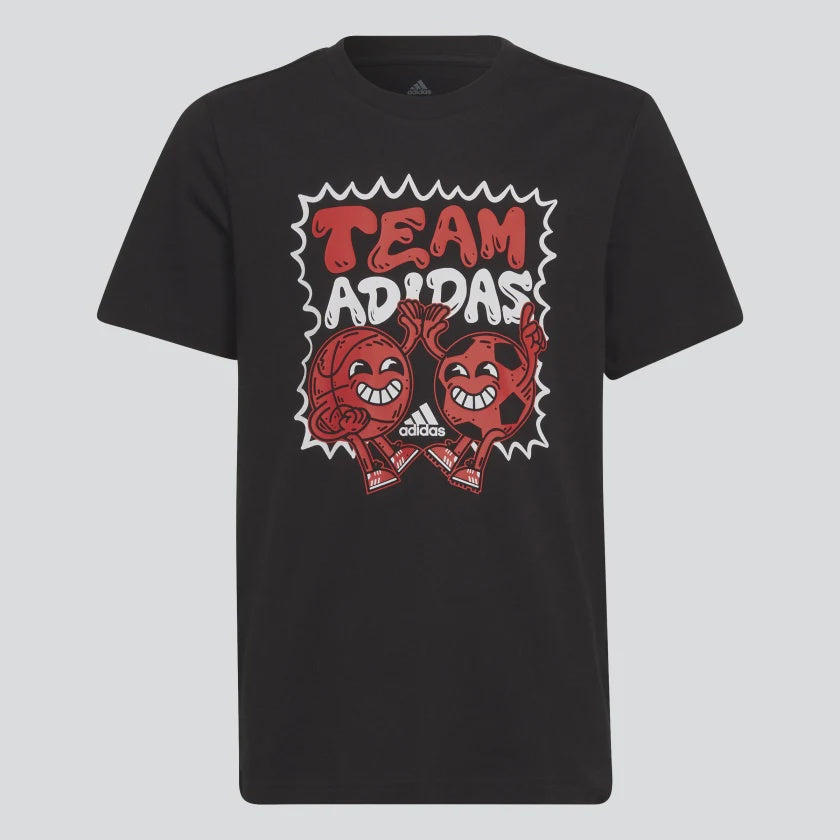 No matter what sport you play, you're always on team adidas. You're serious when the competition is on, but totally cool to keep things light with this juniors' graphic t-shirt. Soft cotton fabric feels like an old favorite fresh from the box. Our cotton products support more sustainable cotton farming.