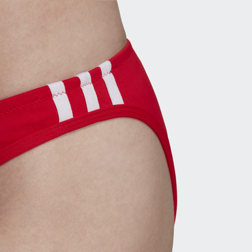 Short and sweet. Keep your sporty look simple and clean with this adidas bikini bottoms. The iconic 3-Stripes come standard. Because, of course. This product is made with Primeblue, a high-performance recycled material made in part with Parley Ocean Plastic.