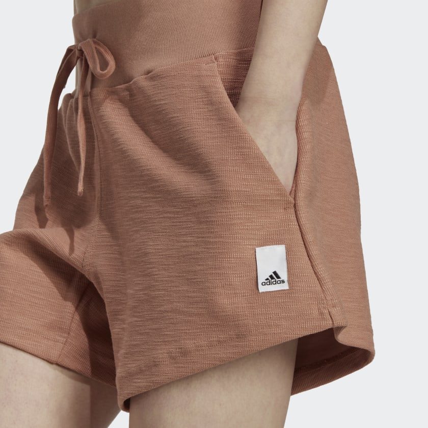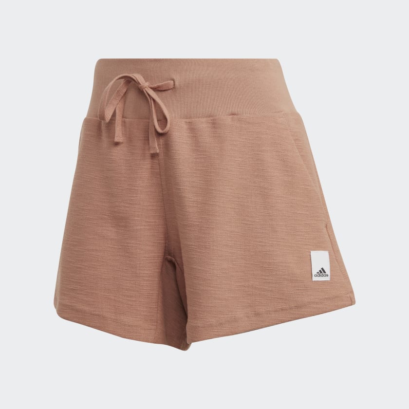 You're right on trend and wrapped in comfort. These adidas shorts are perfect for post-workout lounging. The high-rise, ribbed waistband is easily adjustable. Cut for a loose fit from soft cotton terry fabric, they feel so roomy and comfortable from morning until night.