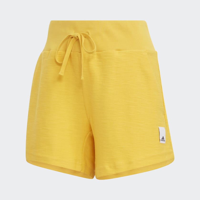 You're right on trend and wrapped in comfort. These adidas shorts are perfect for post-workout lounging. The high-rise, ribbed waistband is easily adjustable. Cut for a loose fit from soft cotton terry fabric, they feel so roomy and comfortable from morning until night.