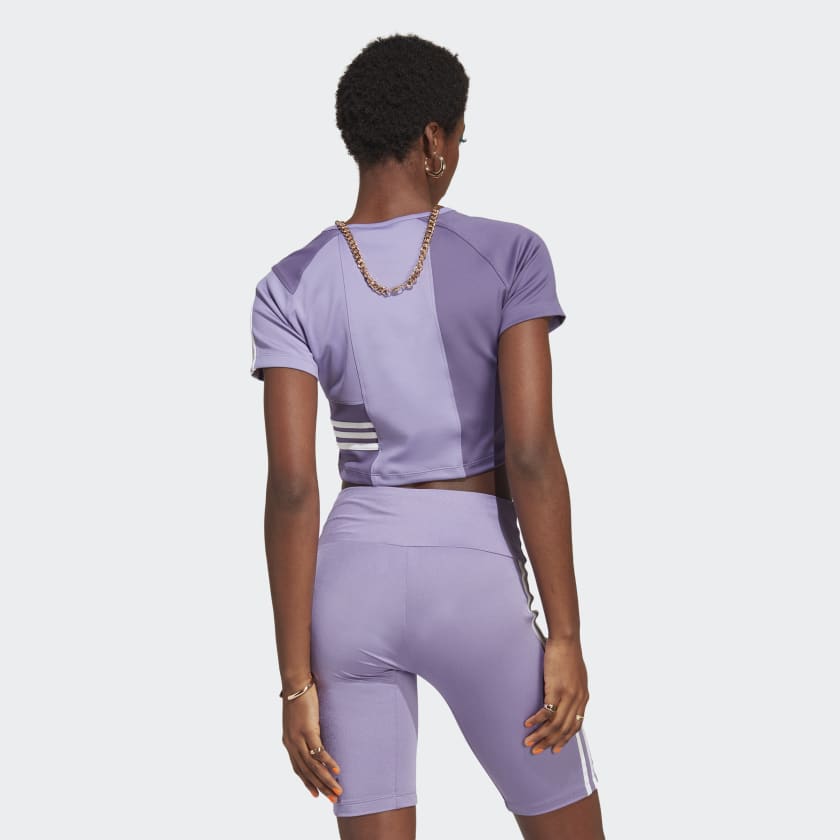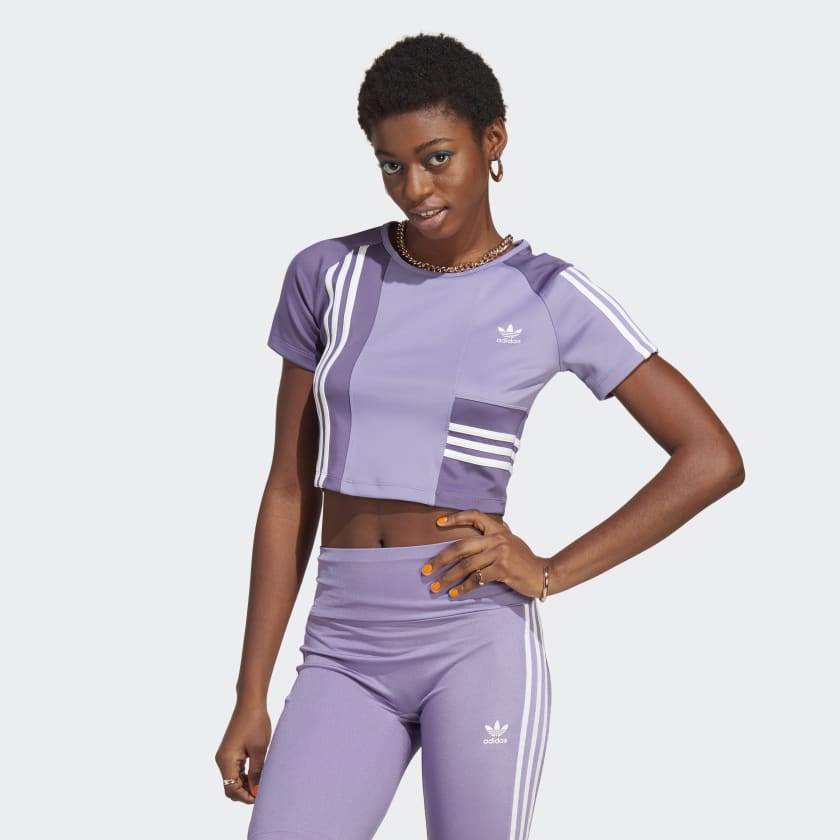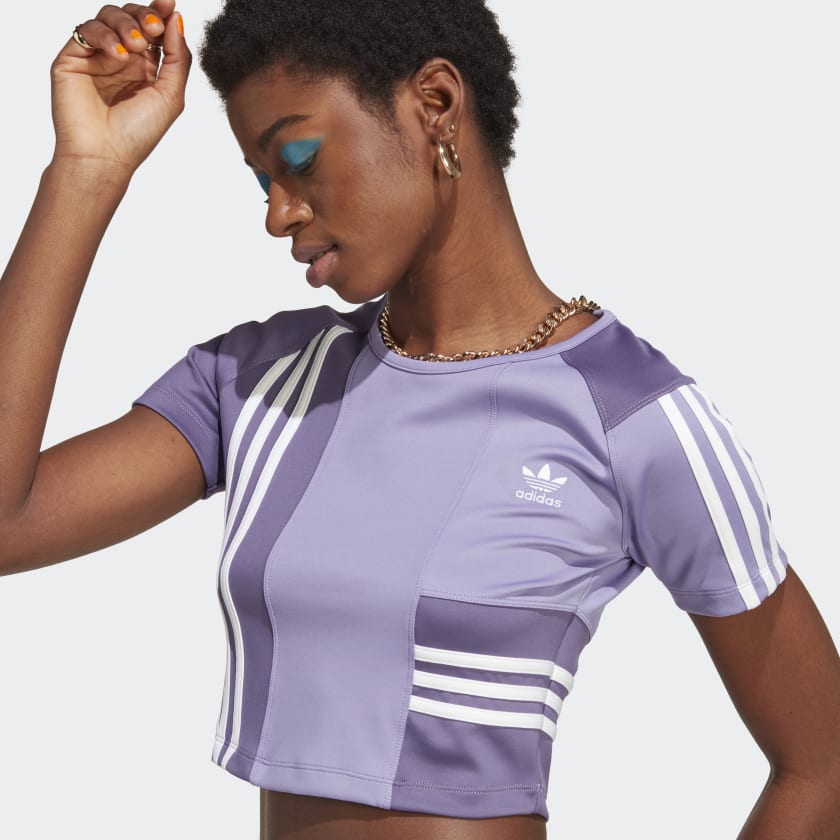 Altered placement of the 3-Stripes adds a new dimension to this adidas crop t-shirt. Throw it on to relax on a chill day, or style it with some distressed denim and layered necklaces for your next coffee date. The iconic Trefoil shows your brand pride.