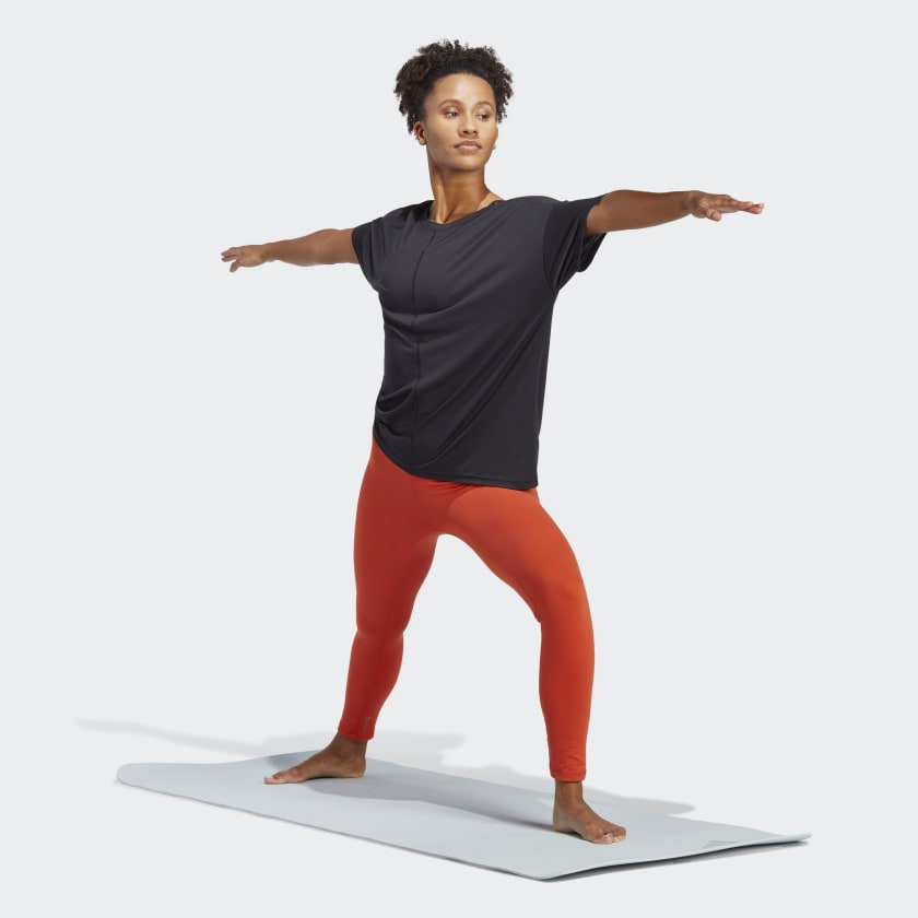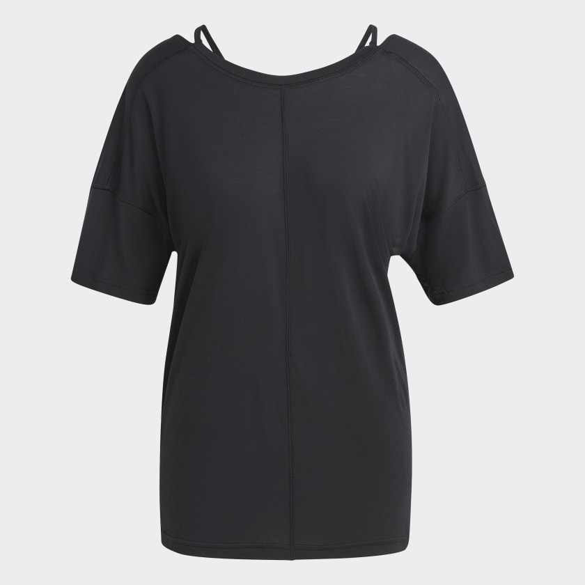 Stand strong and proud in Warrior pose in this adidas yoga t-shirt. The loose fit gives you plenty of room to move, and the strappy back has a deep V to keep your shoulder blades free so you can work on alignment. Moisture-absorbing AEROREADY helps you stay dry in arm balances and long holds.