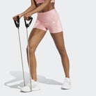 Fit for the gym or your daily grind, these high-waisted short leggings move with you. They have a sleek, body-hugging look and minimal seams for comfort. Sweat-wicking AEROREADY keeps you dry through cardio, weight training or running around with friends. Designed for hybrid training and versatile performance.