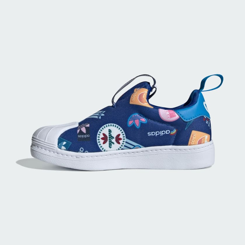 Born on the basketball court in 1969, the adidas Superstar shoes have spent over 50 years becoming an everyday essential off of it. This version for kids is all about comfort, starting with the stretchy mesh upper that instantly delivers a snug yet flexible fit. A one-piece EVA outsole with deep flex grooves lets them move freely, and the iconic rubber shell toe provides protection and grounds the style in its sporty roots. Playful graphics splashed all around keep the look feeling fresh.