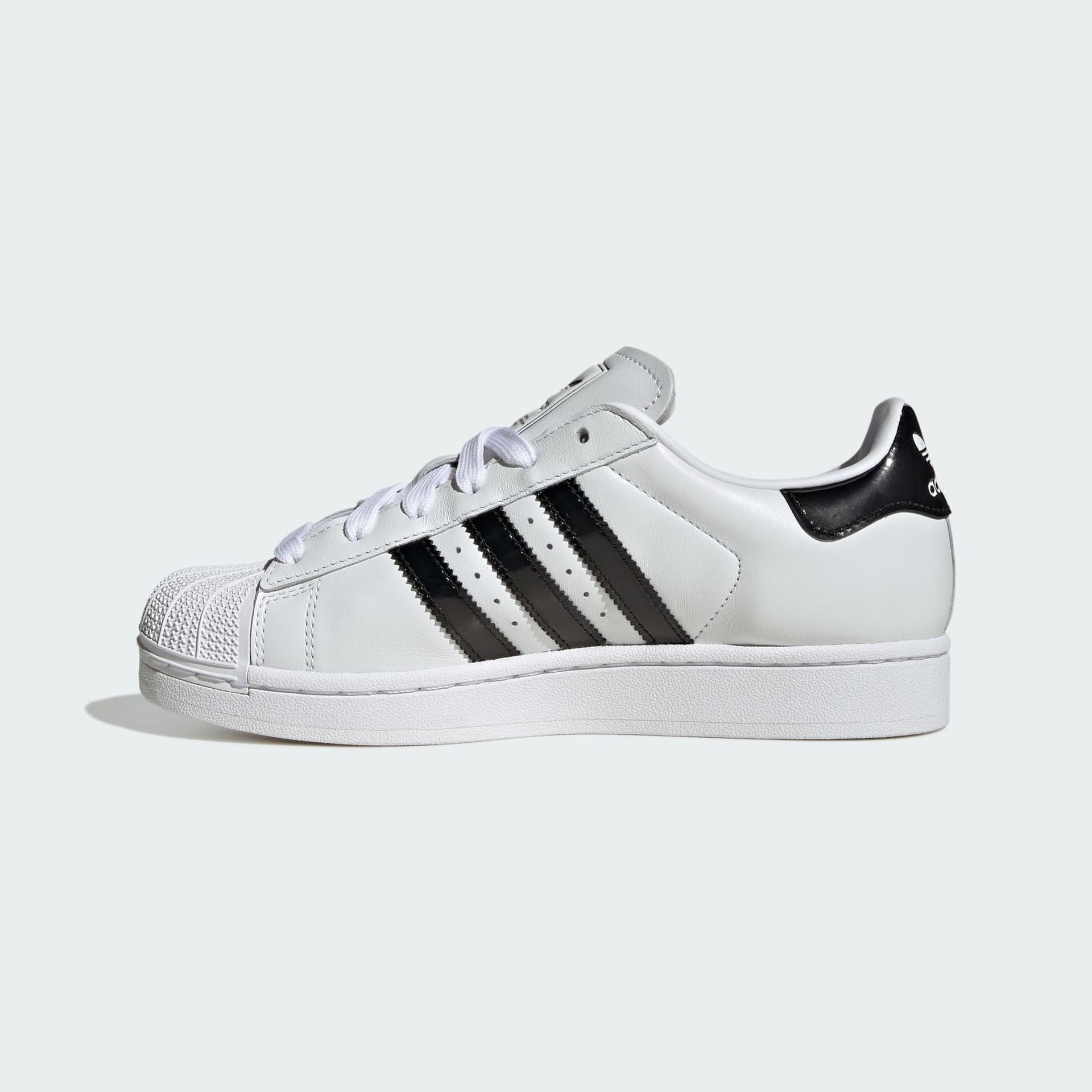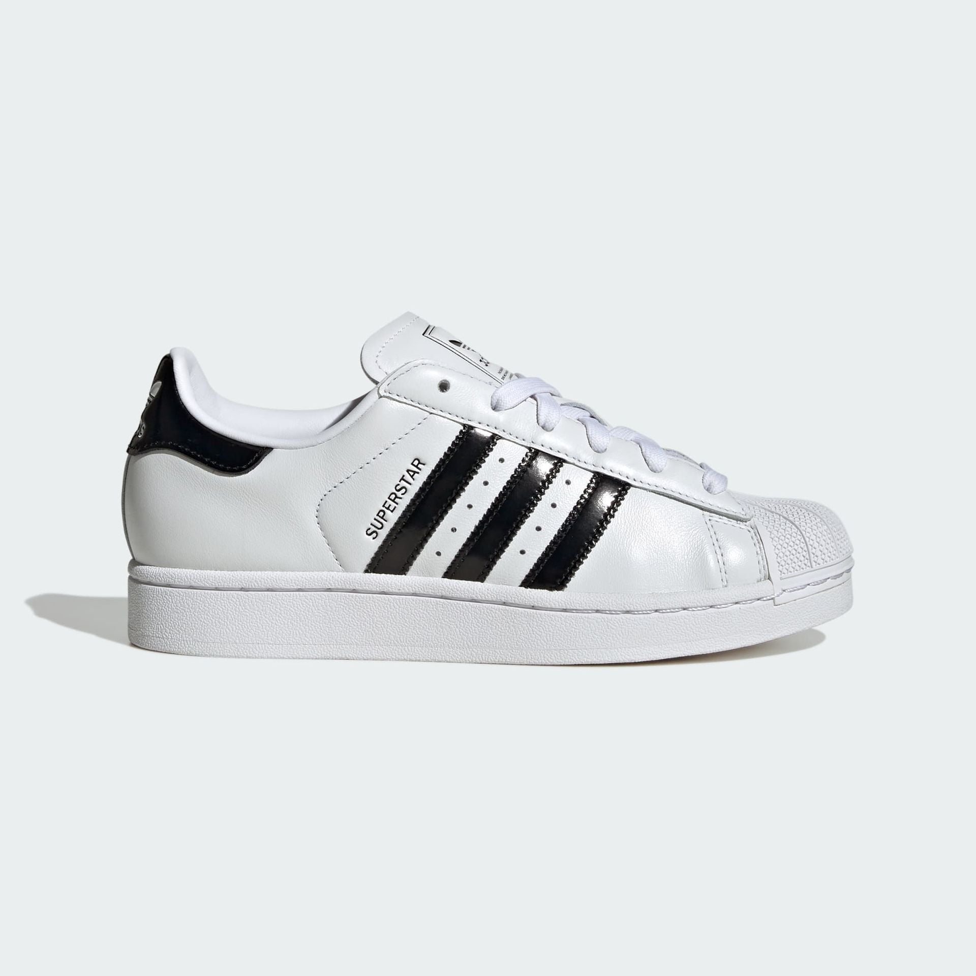 The adidas Superstar shoes have always embodied athletic spirit with a rebellious edge. Bringing fresh attitude to the icon, these trainers shine with patent leather 3-Stripes and heel tab on a smooth leather base. The distinctive rubber shell toe offers signature style, as it has for over 50 years. Whether you're exploring the city or kicking back, these low tops keep you comfortable all day.