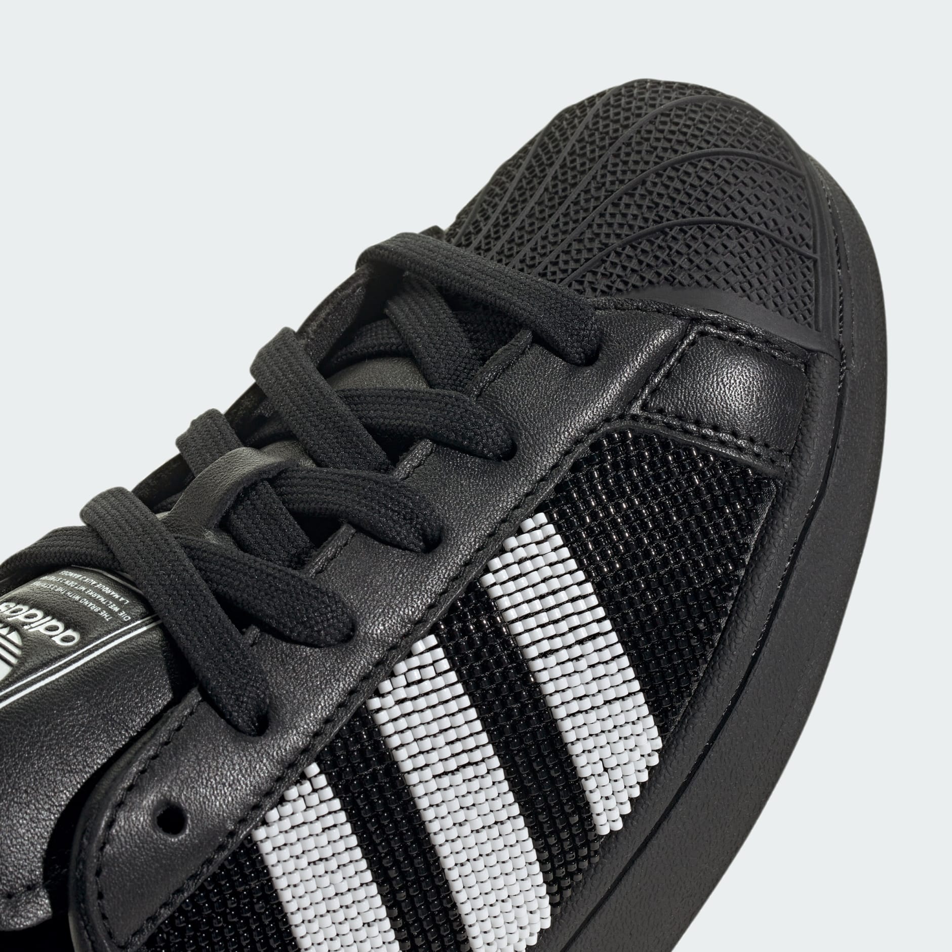 These adidas Superstar shoes take inspiration from a version of the iconic trainers made in the '90s. Similar proportions and attitude, the updated shoes play up the key details of the unmistakable design like the iconic rubber shell toe and the serrated 3-Stripes. The beaded upper adds texture and a sophisticated edge to the sportswear staple.