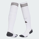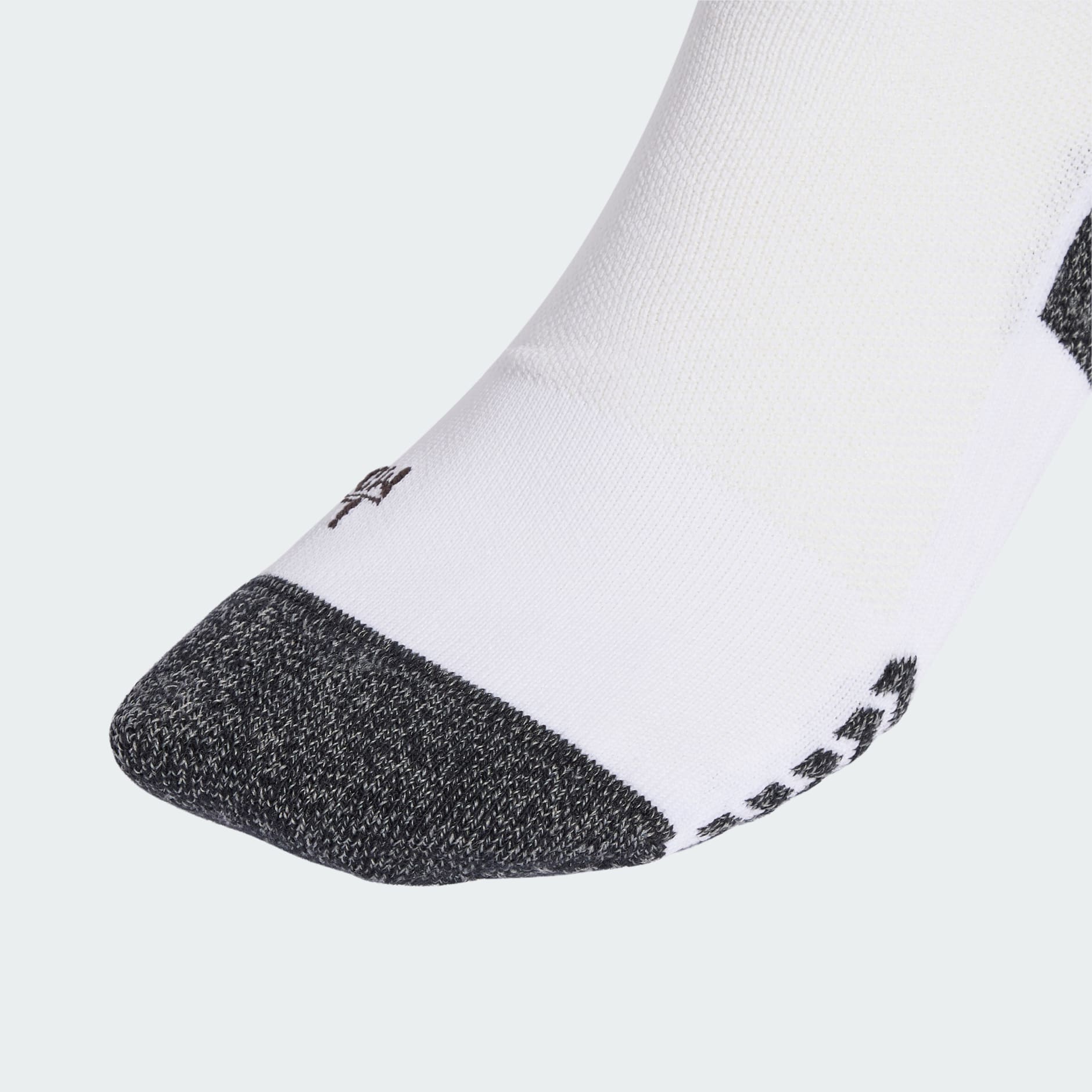 Built on firm foundations. Part of a Real Madrid home kit that marks the Bernabéu's latest refurbishment, these adidas football socks have an "RMCF" graphic woven into their stretchy, supportive fabric. AEROREADY controls moisture so you feel home comforts even when the going gets tough.