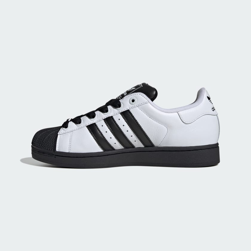 Step into a legend. The adidas Superstar II shoes have spent over 50 years leaving an indelible mark on sport, music and street culture. This version features a full grain leather upper, thick laces and a Trefoil-branded lace jewel for added flair. The iconic rubber shell toe caps the design and points the way forward. With a second set of laces included, you can switch up your look in an instant. Done in a range of neutral shades, these sneakers are heritage heavyweights that make any outfit better.