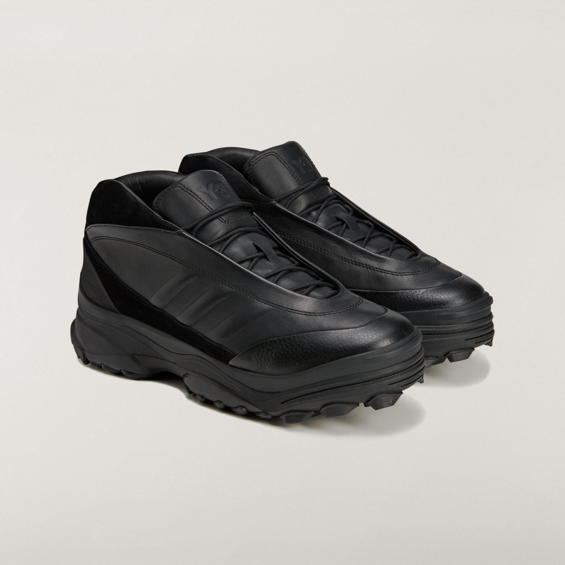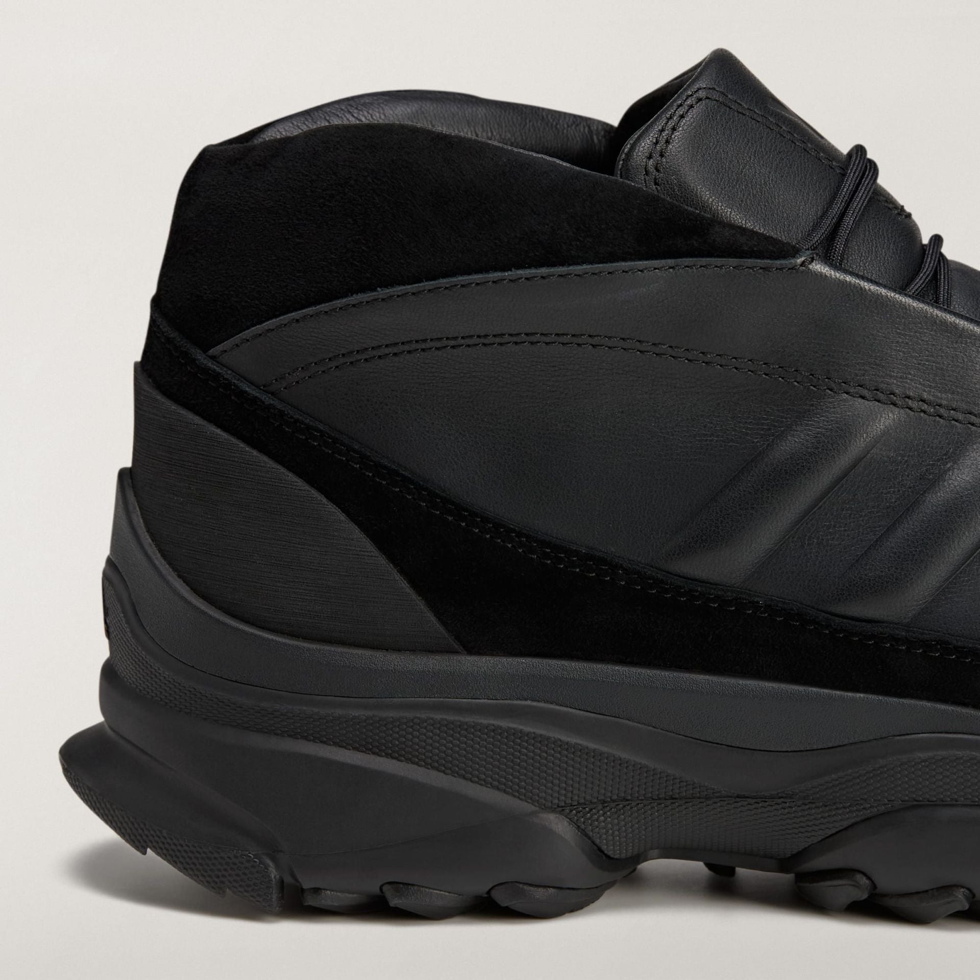 The Y-3 GSG9 Mid is the latest iteration of a Y-3 silhouette that has become iconic for its rugged, utilitarian look. Offered for the first time in a basketball-inspired, mid-cut silhouette, this fresh take on the design is updated with a new EVA midsole element that creates a stacked-height version of the original. A wealth of high-quality materials — a mixture of smooth and tumbled leather, a suede mudguard and a rubber heel overlay — elevate the premium appeal even further, while molded 3-Stripes on the lateral side only and a debossed Y-3 logo on the tongue complement the design.
