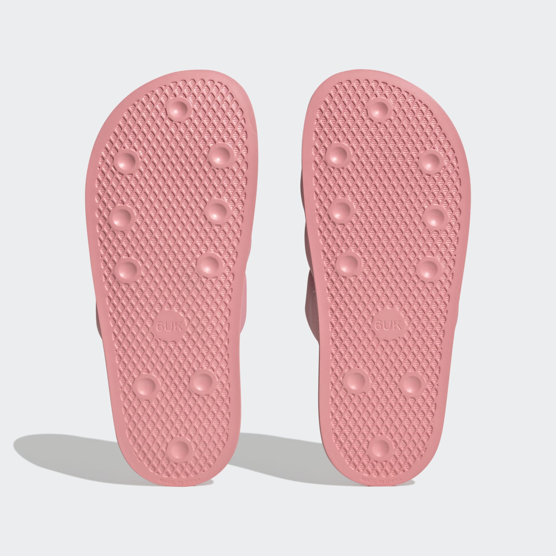 Puffed-up perfection. With a wide upper designed in three puffy stripes, these laid-back adidas slides go all out on comfort. The padded footbed hugs your feet as you walk, and smooth synthetic leather looks seriously sleek. A Trefoil logo along each side makes a subtle appearance in tonal hues, and a synthetic outsole keeps a good grip on every step.