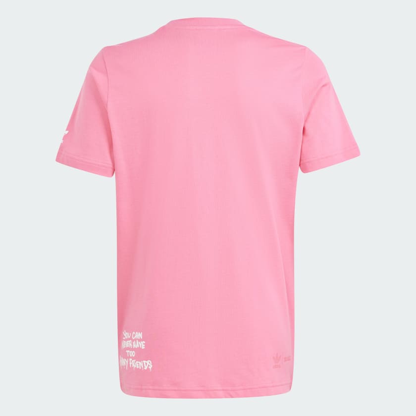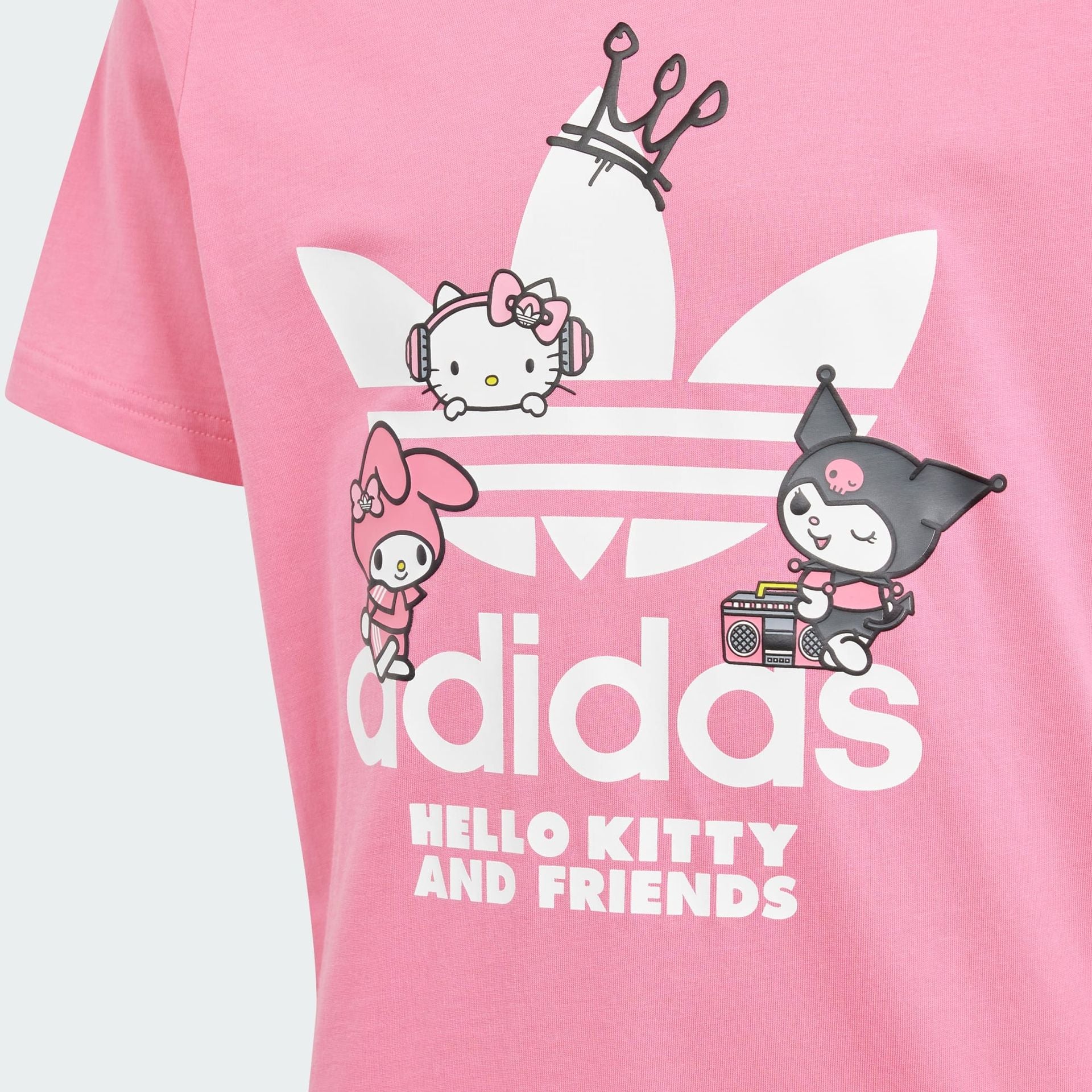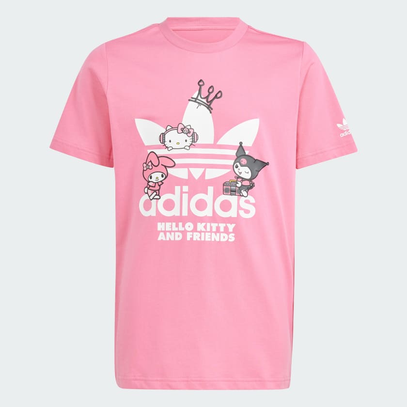 The bow and the three stripes are back! No matter who and how different you are, Hello Kitty knows what friendship is all about. Follow Hello Kitty and Friends through a unique and unexpected lens that ties into adidas Originals' history: time for Hello Kitty together with My Melody and Kuromi to inspire smiles and carry a world of happiness through iconic Music references such as Hip Hop and Street. This whimsical adidas tee for juniors features signature bows and 3-Stripes throughout, celebrating decades of cultural influence from two instantly recognisable brands. A soft cotton build is all about your comfort.