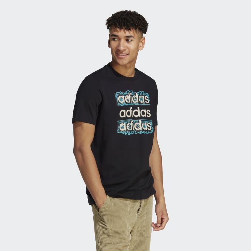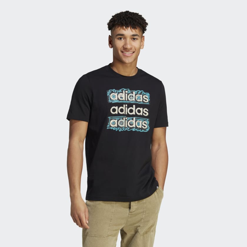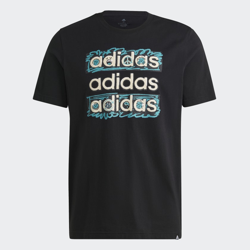 Unplug from life's distractions and take time out in this comfortable adidas t-shirt. Made from cotton jersey fabric, it feels soft against your body. Cut for a regular fit, it can be worn loose or half-tucked into your joggers or jeans. The eye-catching graphic brings playful adidas energy to any situation whether you're kicking back or catching up with friends.