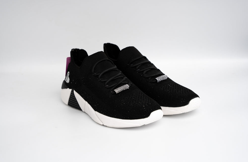 - Soft sleek sparkle finish knit nearly one piece mesh fabric upper