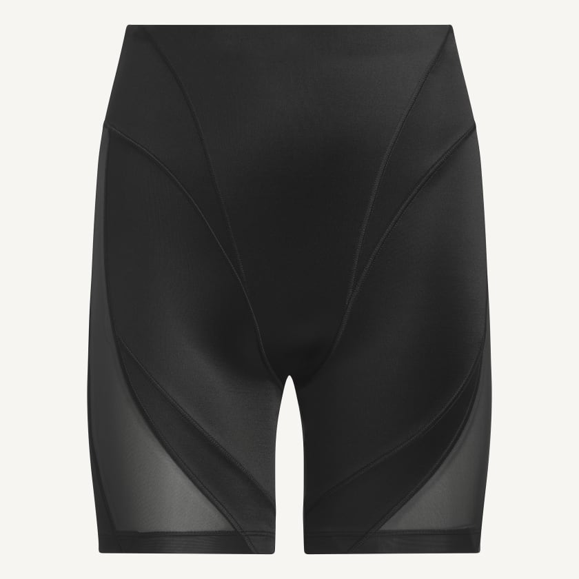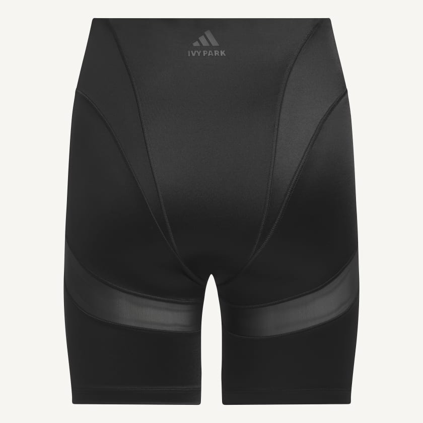 Shiny tricot creates a sleek silhouette for these biker shorts from adidas x IVY PARK. Formfitting with their elasticity, these shorts are comfortable and have plenty of stretch. Sheer mesh inserts outline sweeping curves, creating the perfect contrast between the materials.